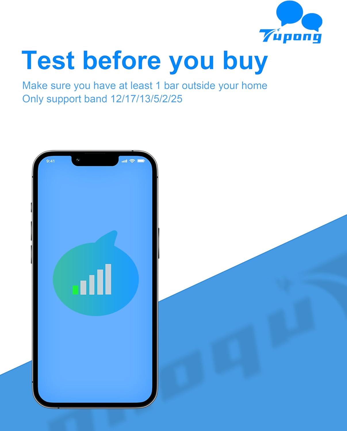 Test Before You Buy – Our cell phone signal booster for home enhances signals for All Carriers on band 5, 13, 12/17,2/25 such as Verizon, AT&T and T-Mobile. Please CHECK YOUR BAND BEFORE PURCHASE and ensure that the frequency of your phone is band 5,13,12,17,2 or 25. It can amplify 5G,4G and 3G mobile phone signals. (Tips: If you want to use 5G, please make sure your area provides 5G service in the existing 4G frequency band before purchasing)