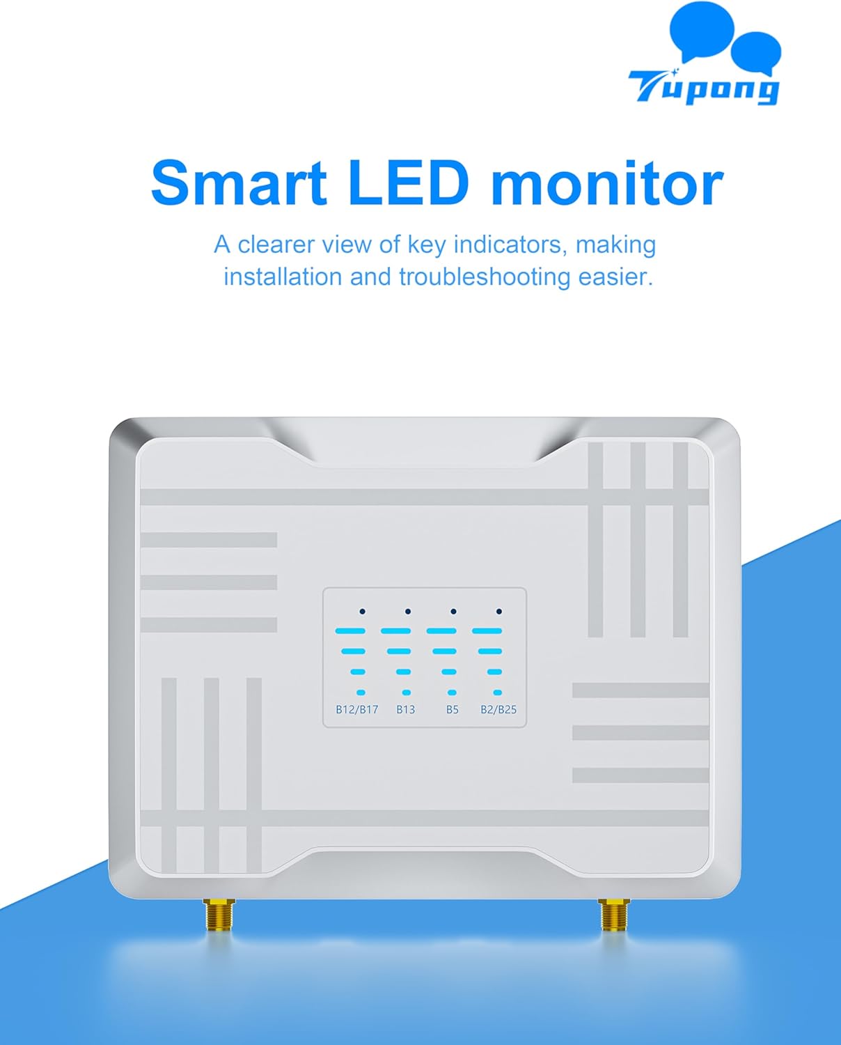 Smart LED Lights Cell Booster – The led lights shows the working status of the cell phone booster for home in real time. In addition, it displays important information such as the gain of the 4 frequency bands at the same time. It can quickly help you find the best location for installing the outdoor antenna during the installation process.