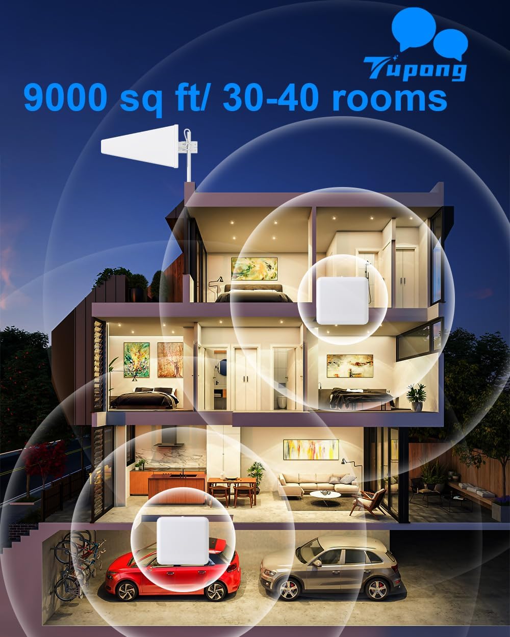 Cell Phone Booster for Home up to 9000 Sq Ft, Cell Phone Signal Booster with 2 Indoor Antennas for All Carriers for Verizon, AT&T, T-Mobile on Band 5/12/13/17/2/25, 5G 4G LTE 3G, FCC Approved