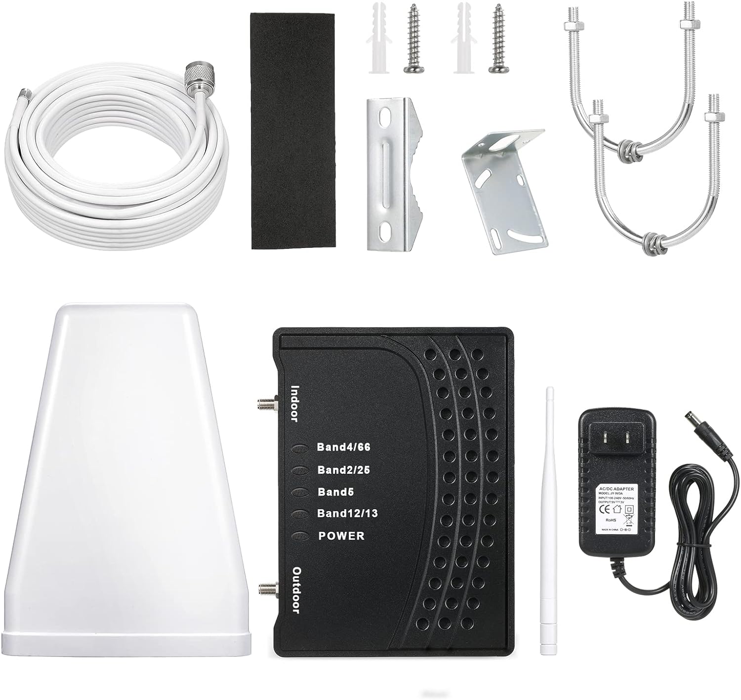 Powerful Cell Booster & Wider Coverage:Signal booster can enhance indoor signal, such as voice, data in home and office etc, so as to reduce the problem of call interruption, poor signal, can help improve voice quality, faster internet speed and wider coverage, it can cover up to 2000sq.ft coverage, with 70dB Gain, Works on band 66/25/12/13/17/5/2/4, Support all US and Canadian carriers of AT&T, Verizon, T-Mobile, Sprint, Straight Talk, U.S. Cellular, etc