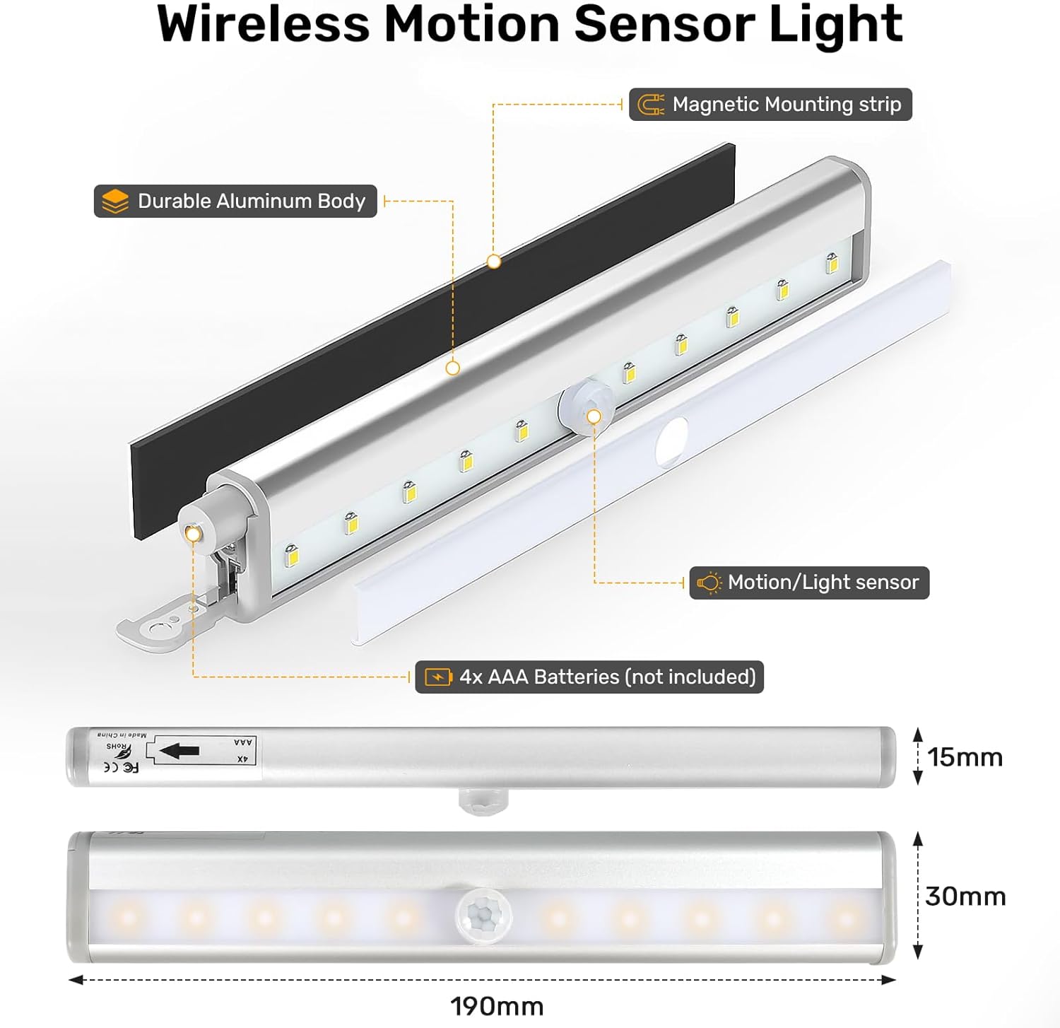【Multi-Purpose】The motion sensor lights is perfect for providing lighting convenience to a variety of places that do not have wired power. It is suitable for campers, RVs, travel trailers and other outdoor dark places, as well as cabinet, closet, kitchen, hallway, bathroom, drawer, attic, cupboard, basement, storage room, garage, cellar, vanity mirror, drawer, stairs, workstation, etc.