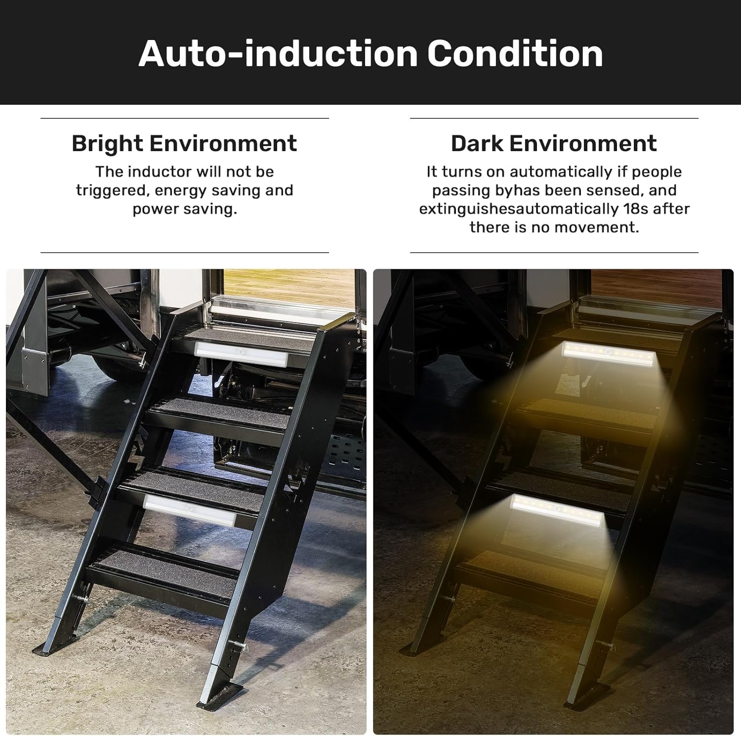 【Bright LED RV Step Lights】The RV Step Lights Motion Activated built-in 10pcs high quality LED beads, super bright, no glare, no flashing, no harm to eyes. The wireless camper step lights is made using high-quality materials that will not break, bend, or corrode with time. If you feel any dissatisfaction, please contact us directly, we will solve the problem for you within 24 hours!