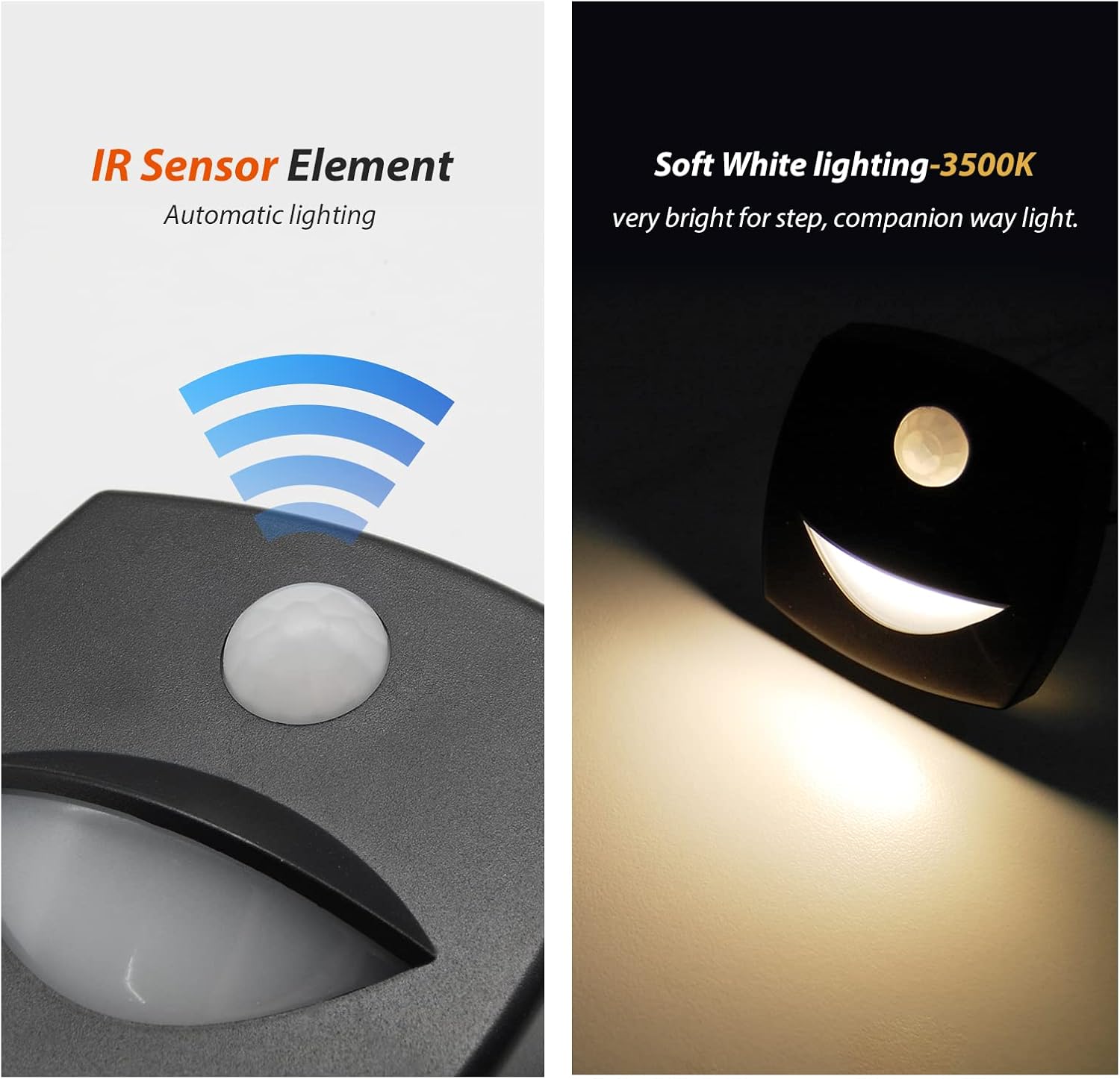【PIR Motion Sensor Light】Built with PIR motion sensor, brings auto companion way light for persons who close to the sensor detector within 4 meters. If repeatedly detect no person in detection range, the light stays 37s then auto off.
