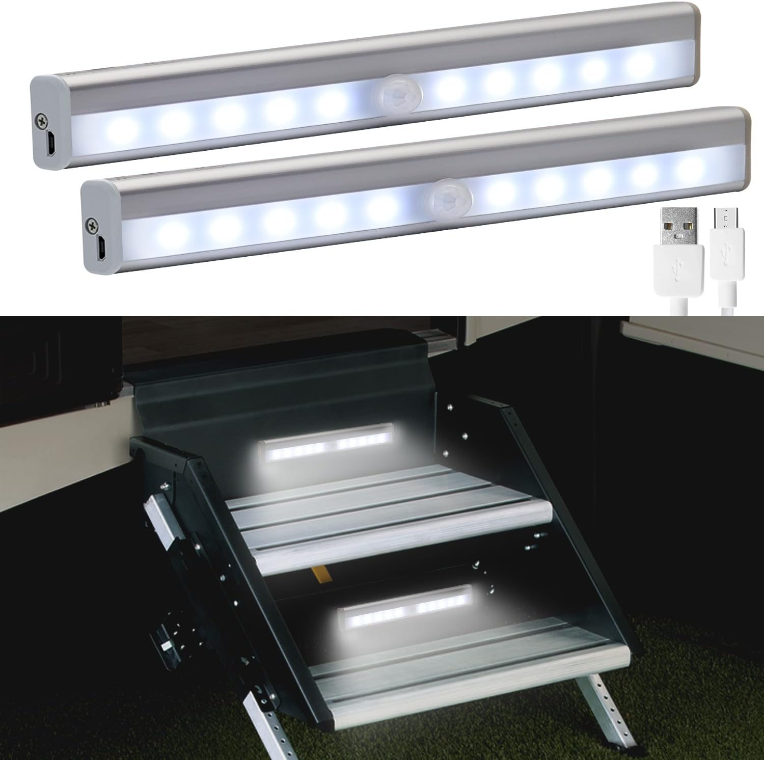 Motion Activated RV Step Lights, 10 LED USB Rechargeable RV Motion Sensor Led Light Strip, Wireless Magnetic Camper Step Lights Bar for Motorhome Travel,Travel Trailers, Camper (2 Pack)