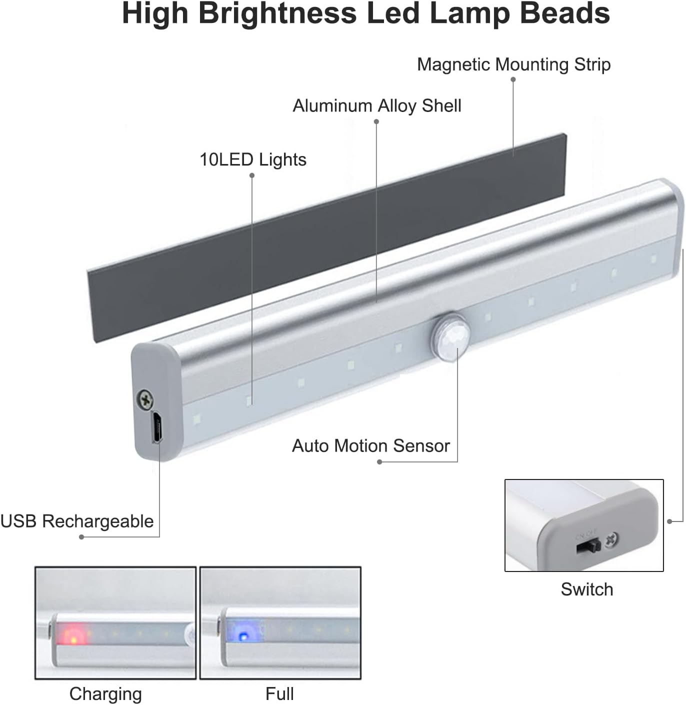 【USB Rechargeable and Easy installation】These rv camper light built-in 400mAh high-capacity rechargeable battery, easily charged via the USB cable(included), It only takes 3-4 hrs to fully charge, no need to buy batteries. Easy installation does not require drilling or screws, just peel off the tape and stick the magnetic strip to the location you want to install, the magnetic sensor light will automatically adsorb on the magnetic strip. Not recommended for wet locations