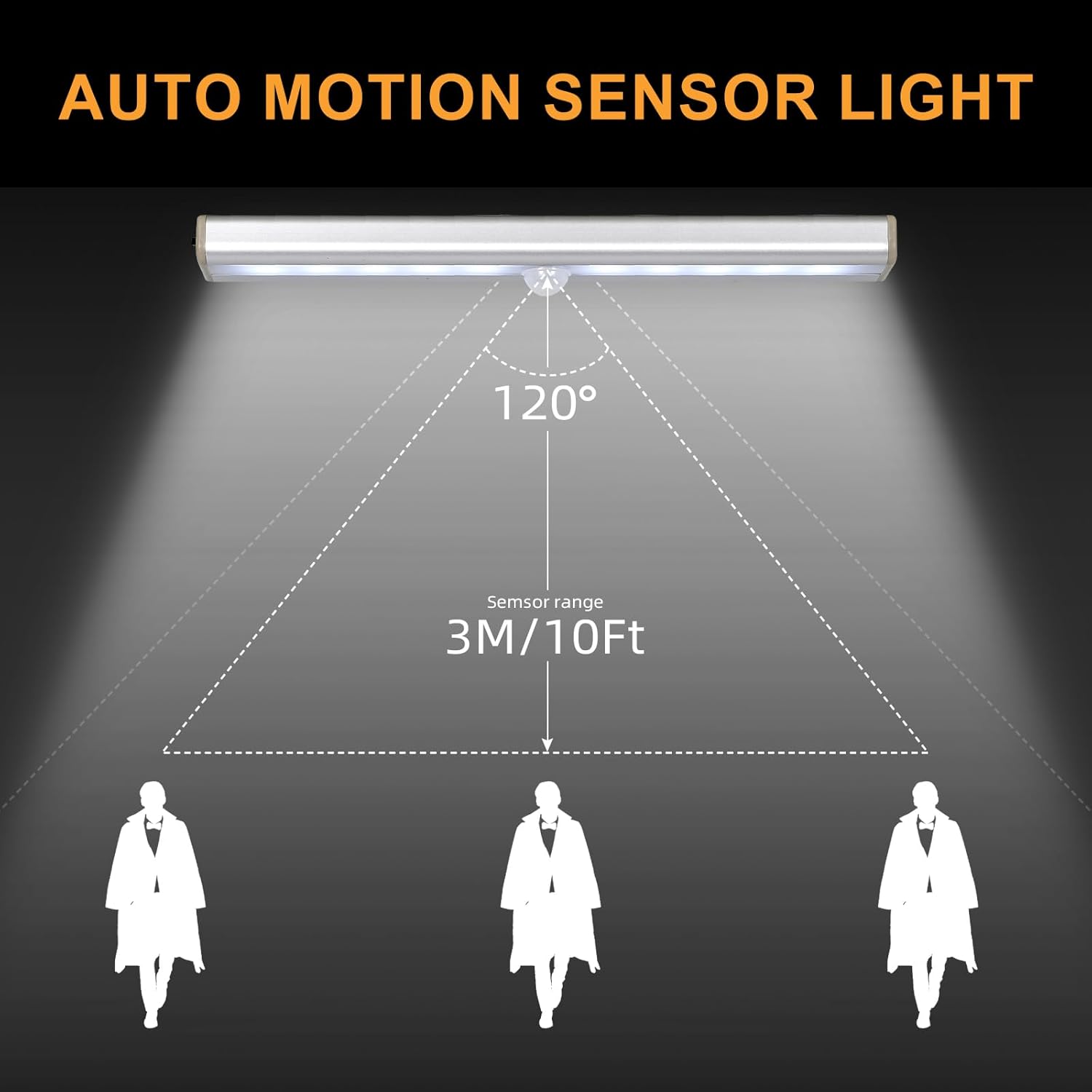 Auto Motion Sensor: Closet lights has the function of detecting human movement. The under cabinet lights wireless will turn on automatically once it detects your approach within 10 feet in dark. When no motion or other light source is detected, it will automatically shut down after 18 seconds to save power and prolong its life. You can turn on the switch to turn the lights on and off at any time.