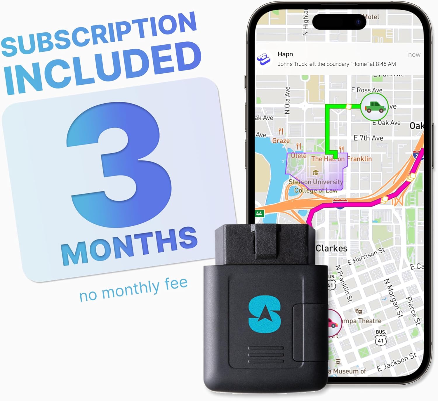 SUBSCRIPTION INCLUDED: No training or professional install needed. Just plug into your vehicle port, log on, and activate. No need to charge a battery or mess with any wiring. Receive real time vehicle alerts – powered by the Hapn iOS/Android app.