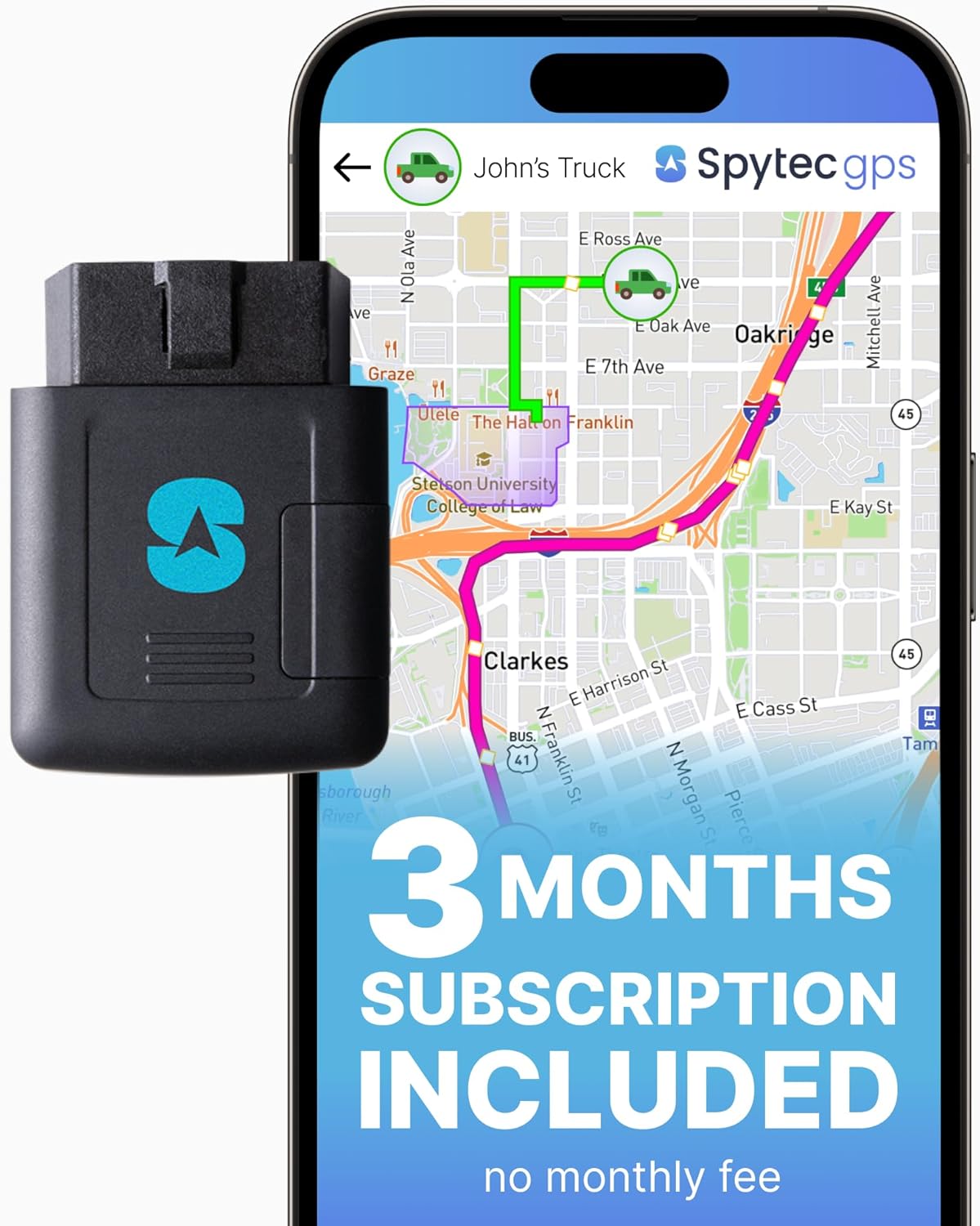 Spytec Plug-in GPS Car Tracker w/ 3 Month Service, No Fees, GPS Tracking for Vehicles, Trucks, & Family Safety, Easy Installation, Speed Monitoring, Location History, USA & Worldwide Tracking
