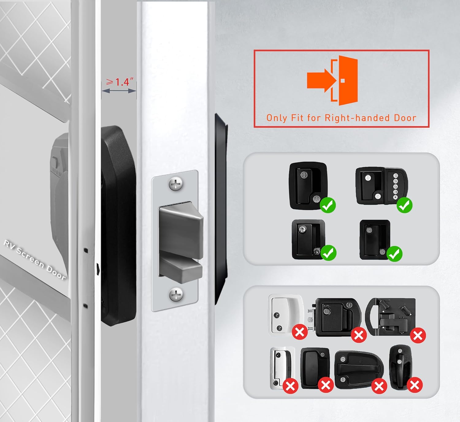 FITS MOST TRAILERS:The camper door latch keyless lock fit most rv door locks including trailer, bumper-pull, horse, 5th wheel, camper, and cargo trailers.In addition, it works well for most traveler trailer entry doors. Common opening sizes that measure 3.75” x 2.75” x [1.25-1.5]”.