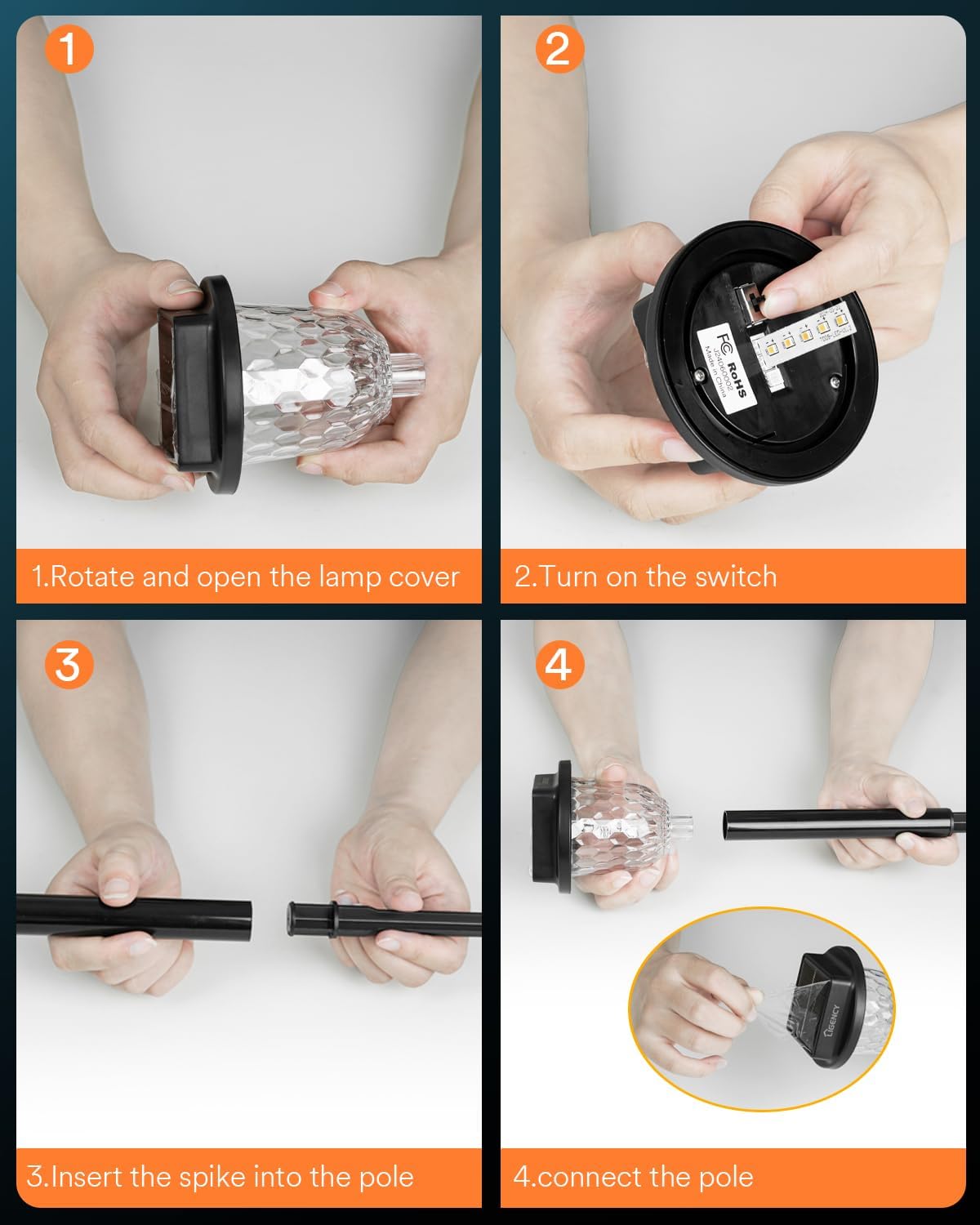 Easy to Install: Ligency maintenance-free solar powered outdoor lights is easy to assemble,just turn on the interior switch and insert the stakes into ground as a solar ground lights or put it on flat table