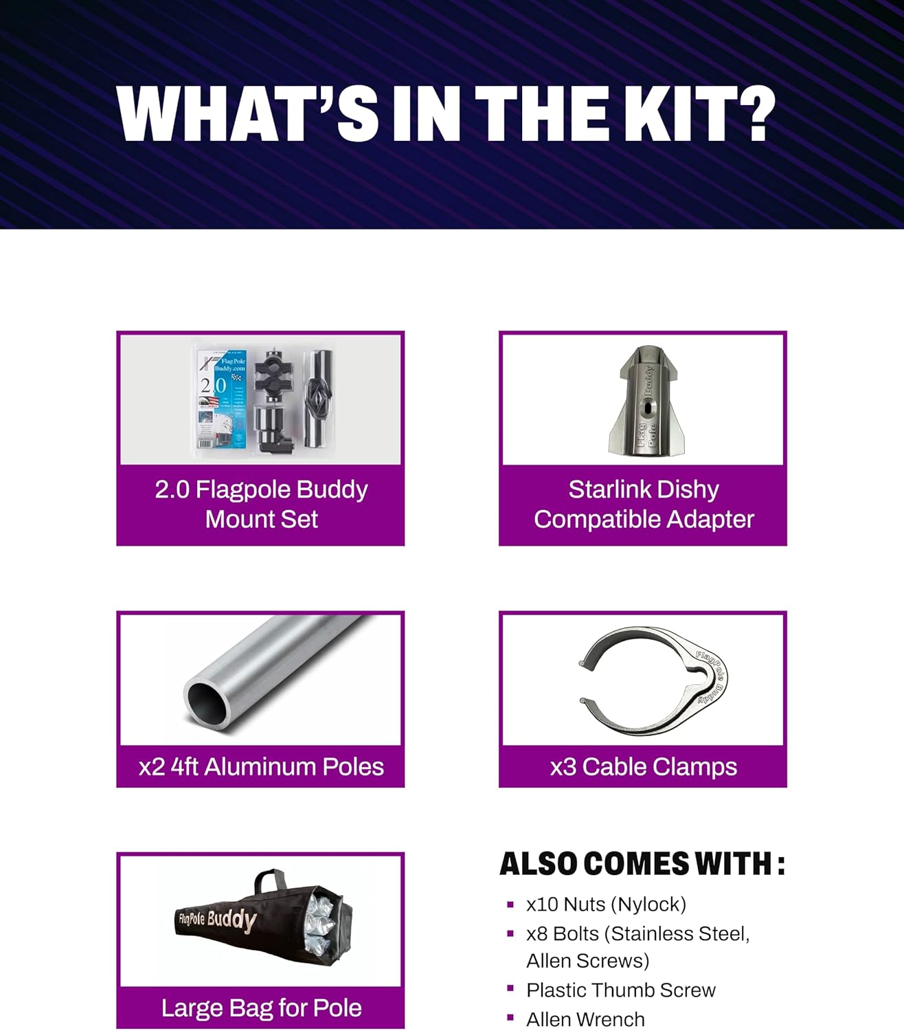 FlagPole Buddy Starlink Gen 2 Compatible Mounting Kit for RV Ladder Mount