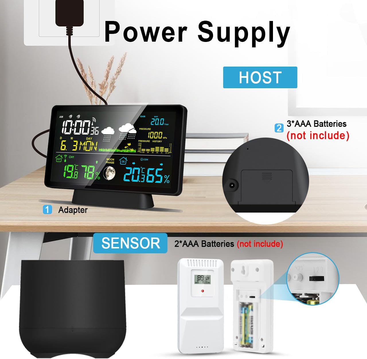 Weather Stations With Multiple Channels — The digital weather station is featured with 3 remote channels, allowing for the detection of multiple locations such as storage rooms, wine cellars, vegetable sheds, etc. (Please note that the package includes only 1 sensor.) If the weather gauges does not meet your expectations or if you encounter any issues with the product, please contact us immediately.