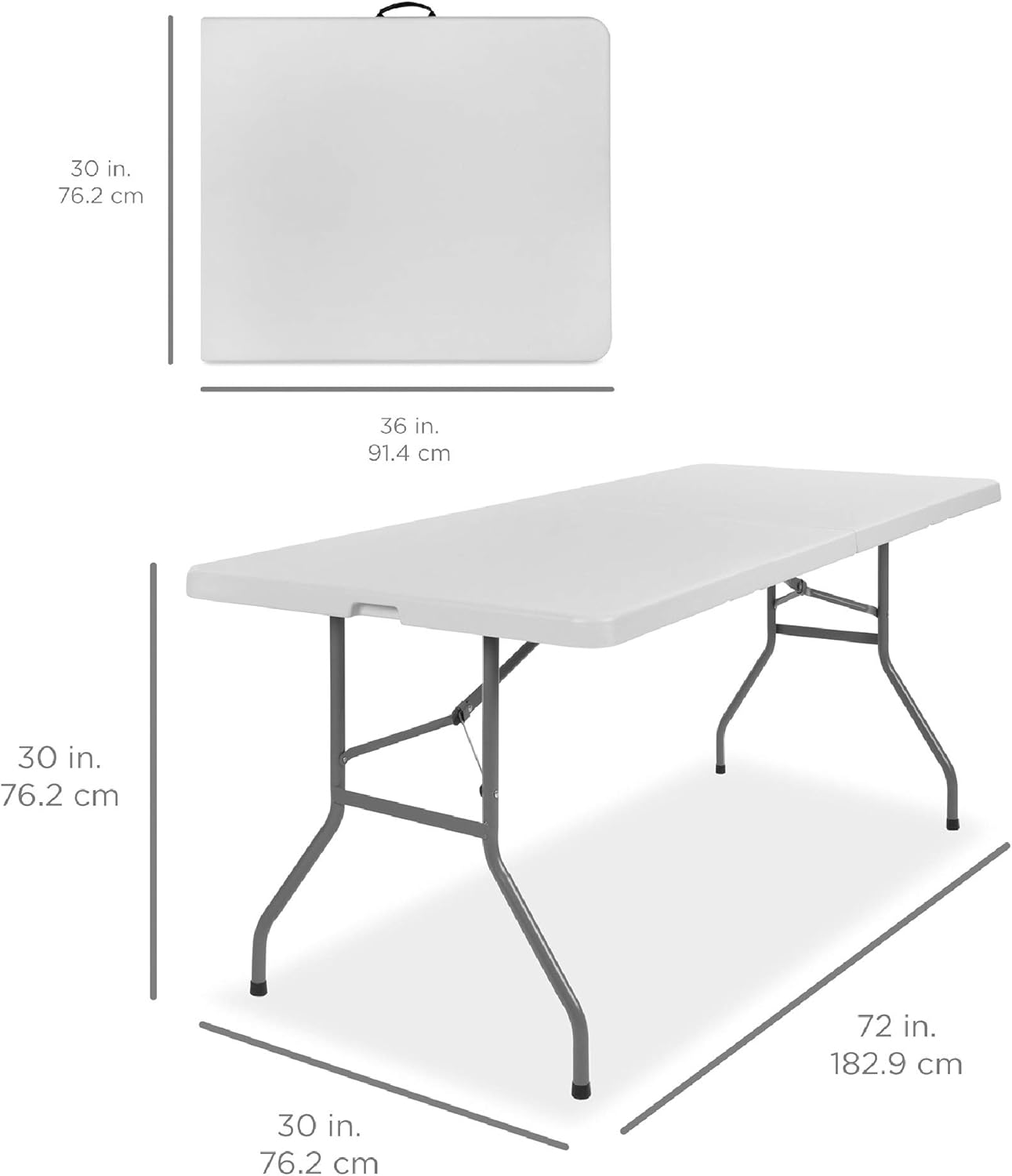 EASY ASSEMBLY: Table is ready for use right out of the box; simply unfold it, lock the legs to keep it sturdy, and your table is good to go!; OVERALL DIMENSIONS: 72″(L) x 30″(W) x 30″(H); Weight Capacity: 300 lbs.