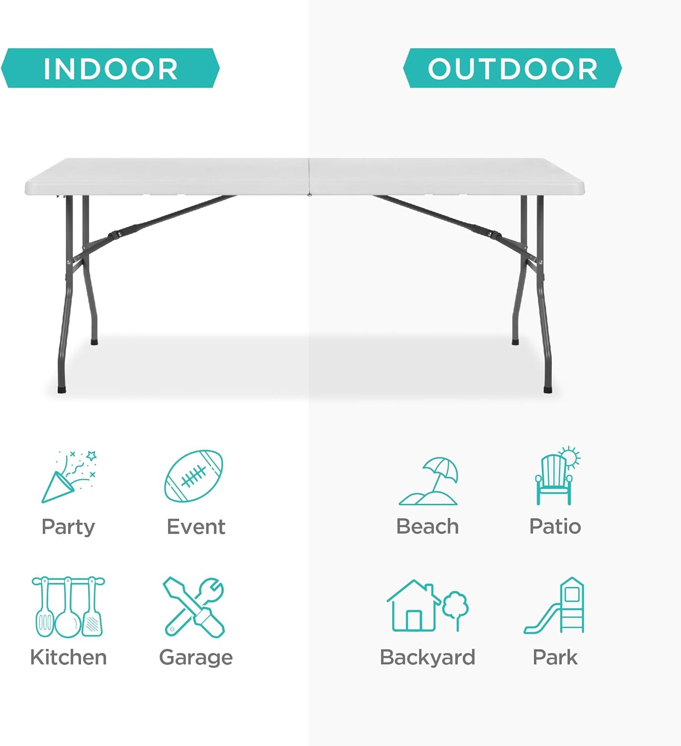 INDOOR/OUTDOOR USE: Versatile use makes it perfect as a dining or game table for outdoor cookouts or birthday parties, or as a serving or display table for indoor events