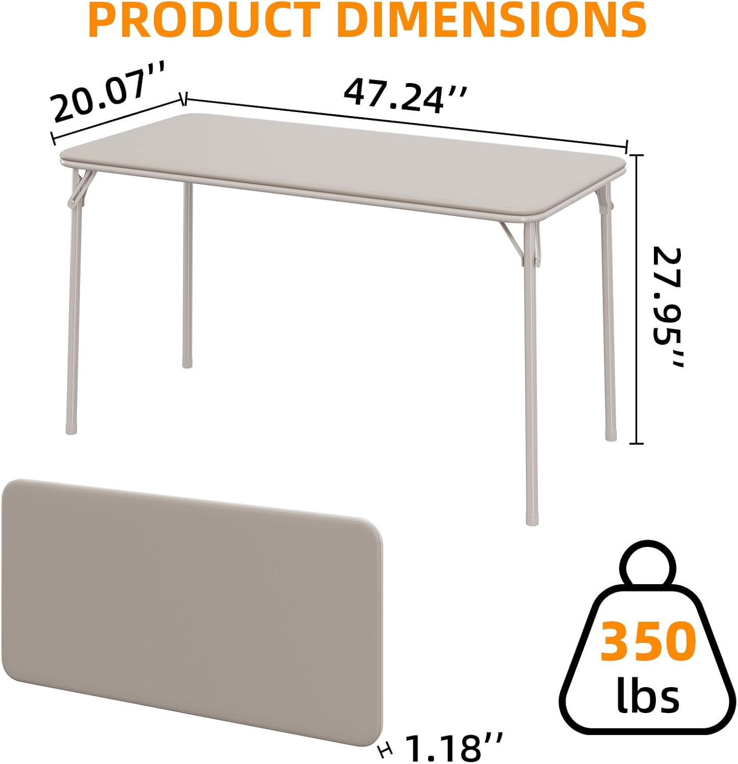 【Generous Size】Folding Chairs: 18.5″D x 18.5″W x 34.8″H, with a maximum weight capacity of 350 lbs each. Folding Table: 20.07″D x 47.24″W x 27.95″H, with a maximum weight capacity of 350 lbs. Sturdy and reliable, this set offers ample space and supports heavy use.