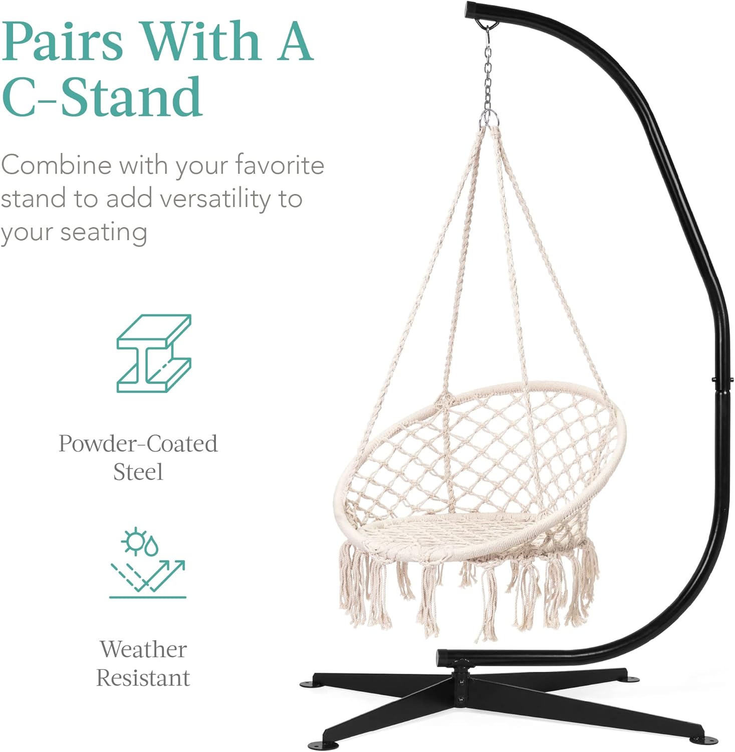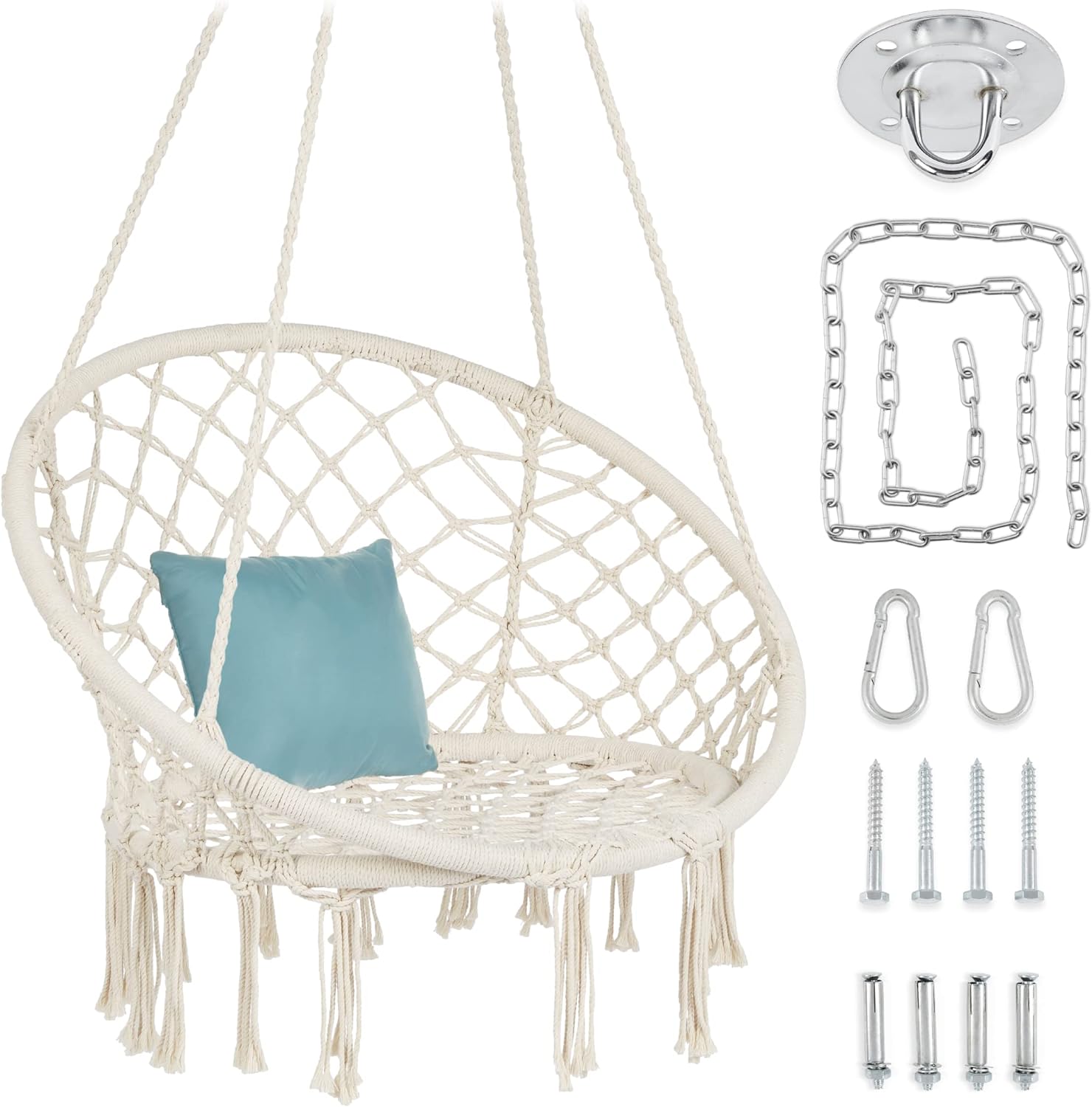 Best Choice Products Macramé Hanging Chair, Handwoven Cotton Hammock Swing for Indoor & Outdoor Use w/Mounting Hardware, Backrest, 265lb Capacity – Beige