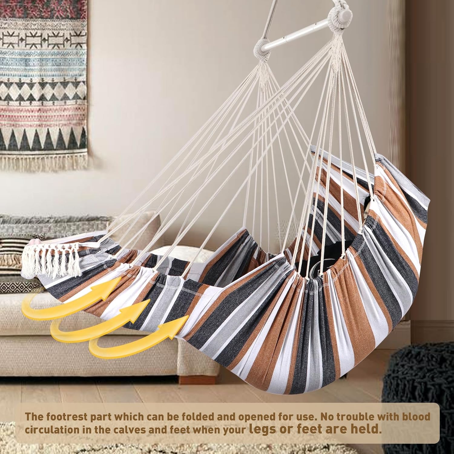 Chihee Hammock Chair Hanging Chair with Foot Rest 2 Cushions Max 500lbs Robust Metal Spreader Bar Collapsible Easy Storage Soft Cotton Swing Chair Strong Strap Iron Carabiner Side Pocket Included