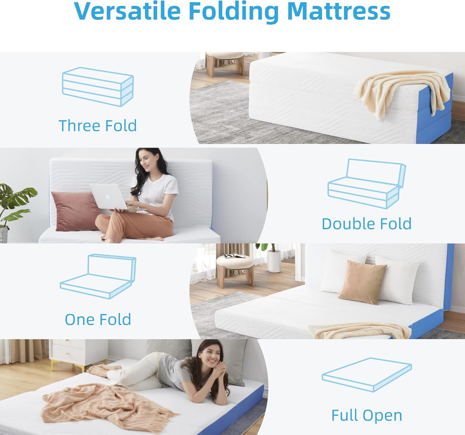 6 Inch Queen Foldable Mattress,Gel Infused Memory Foam Trifold Mattress with Carry Bag, Washable Cover,Floor Mat for Guest,RV,Portable(80“x 60“x 6“)