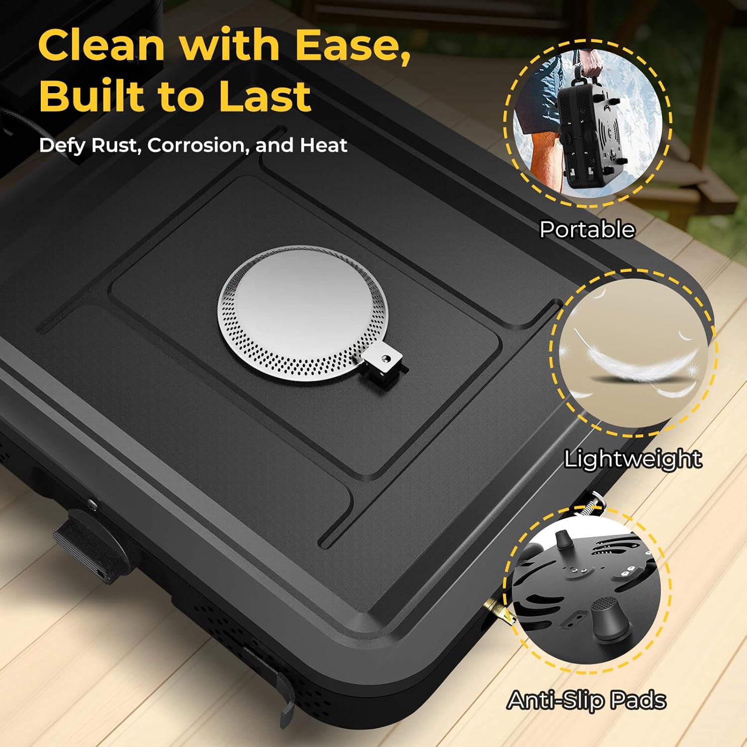 Safety Non-Slip Foot Pads – Our two burner propane stove come equipped with non-slip foot pads that provide a solid foundation for cooking, even on uneven or wet ground. Unlike rubber mats that can melt or warp, our durable steel mats and heat-resistant feet offer a stronger grip. This ensures stability and safety throughout your cooking process, so you can focus on creating delicious meals