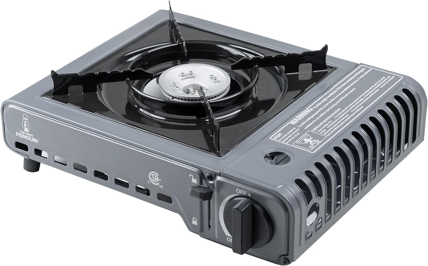 The First Penguin Portable Camping Stove – with Carrying Case 10,000 BTU Great for Emergency Preparedness Kit, High Power Butane Stove, Perfect for Camping, Hiking and Emergency-Grey