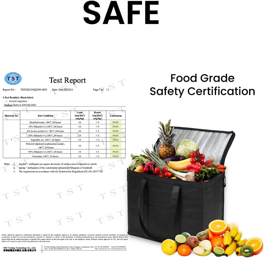 3XL Insulated Cooler Bag and Food Warmer for Delivery & Grocery Shopping with Zippered Top, Black (1 Pack)