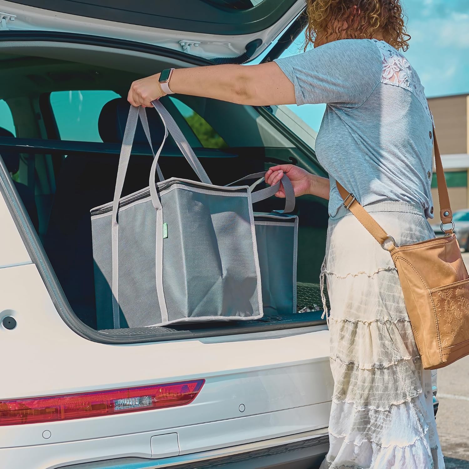 Creative Green Life XL Insulated Reusable Grocery Bags (2-Pack) – Premium Quality Cooler Bags with Hard Bottom Insert, Stands Upright, Washable