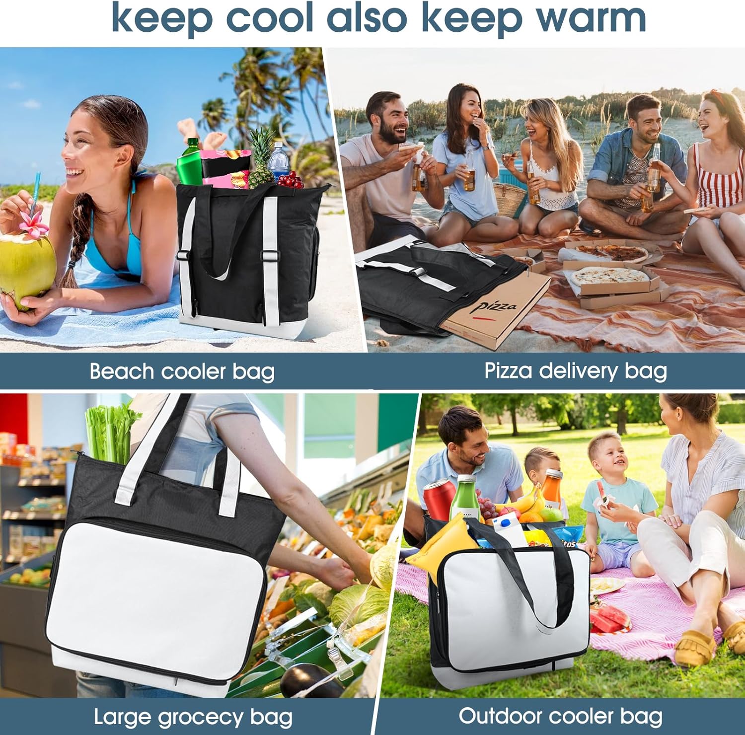 Insulated Cooler Bag,Leakproof Soft Cooler Tote Bag, Front Expandable Pocket Make Large Reusable Grocery Bags for Hot Cold Food,Camping CoolerTravel Insulated Bag, Beach Cooler Bag