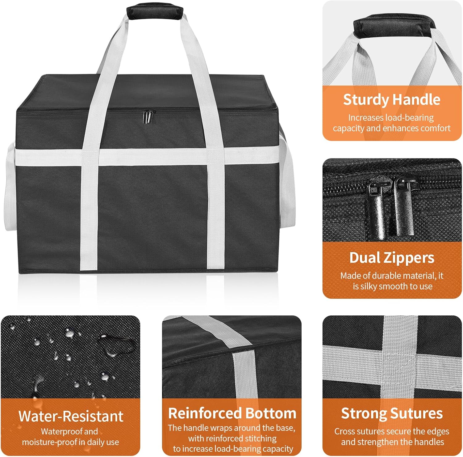 Strong & Durable: The pizza delivery bag are made of high-quality fabric, featured two-way slider zippers and reinforced handles, ensuring you can carry your items with ease and confidence. Our insulated cooler bag has strong weight-bearing alibilty, holds up to 110 Lbs.
