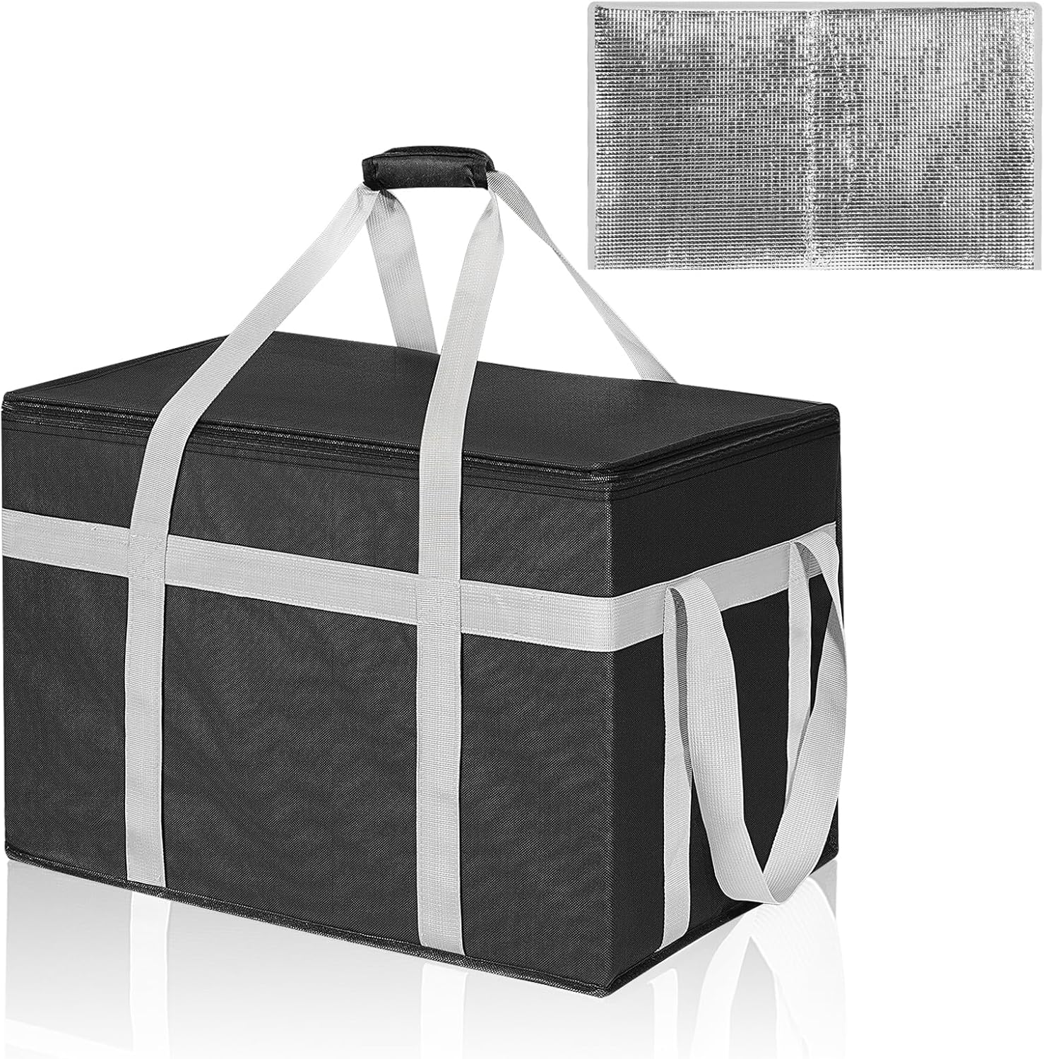 Insulated Food Delivery Bag with Removable Hard Bottom, XXXL Reusable Insulated Grocery Bag for Hot and Cold Food, Catering Cooler for Doordash, Warmers, Parties (Black,1 Pack) (1)