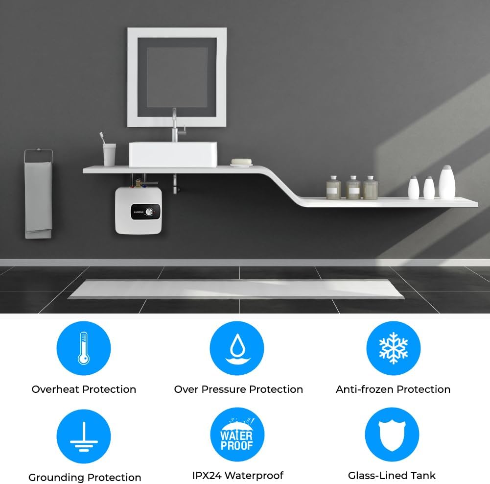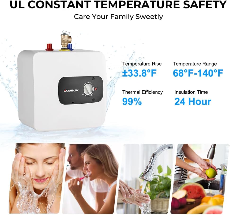 HIGH QUALITY & LONG LAST – The small water heater has UL listed and uses a glass-lined tank with good insulation, and freezing mode can prevent the water tank from freezing, ensure a long service life