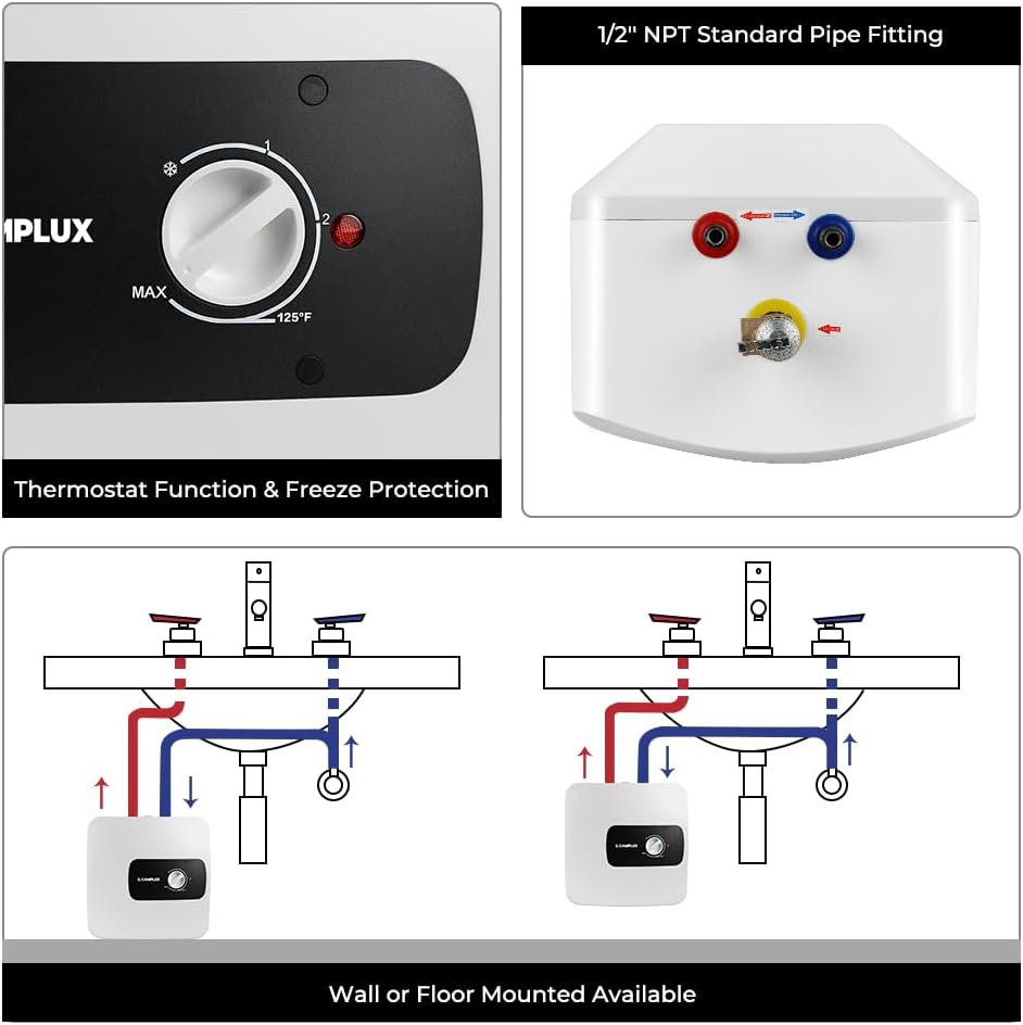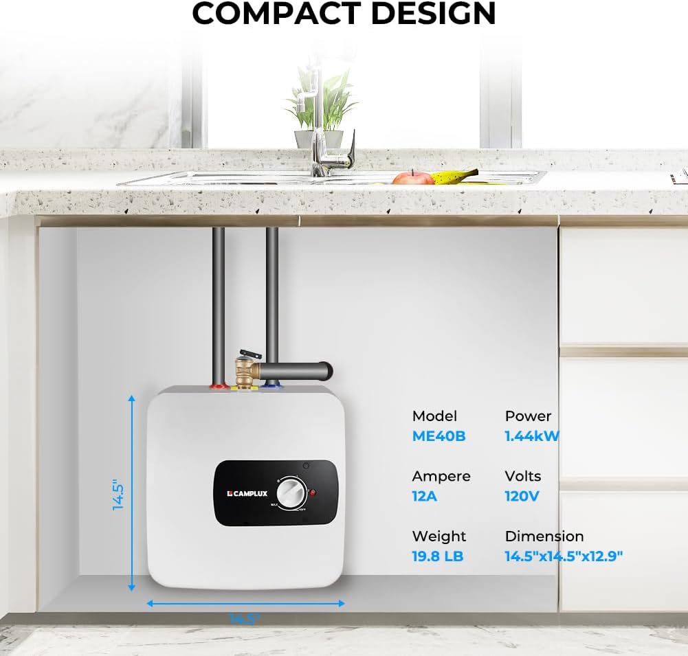 CAMPLUX Hot Water Heater 4 Gallon, On-demand Water Heater Electric Water Heaters with Cord Plug 1.44kW at 120 Volts