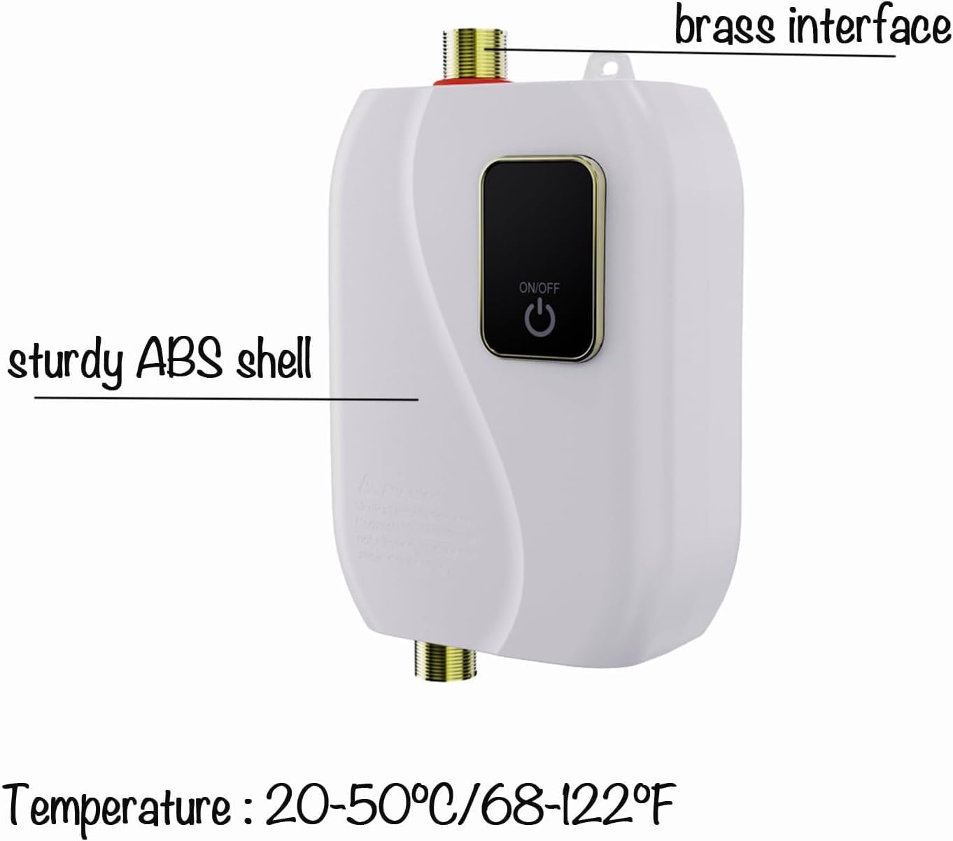 Premium material: 304 stainless steel lining, 316L stainless steel heating pipe, sturdy ABS shell, uni-corrosion brass interface. IPX4 waterproof, dry burning protection, leakage protection, and overheating protection upgrade safety level