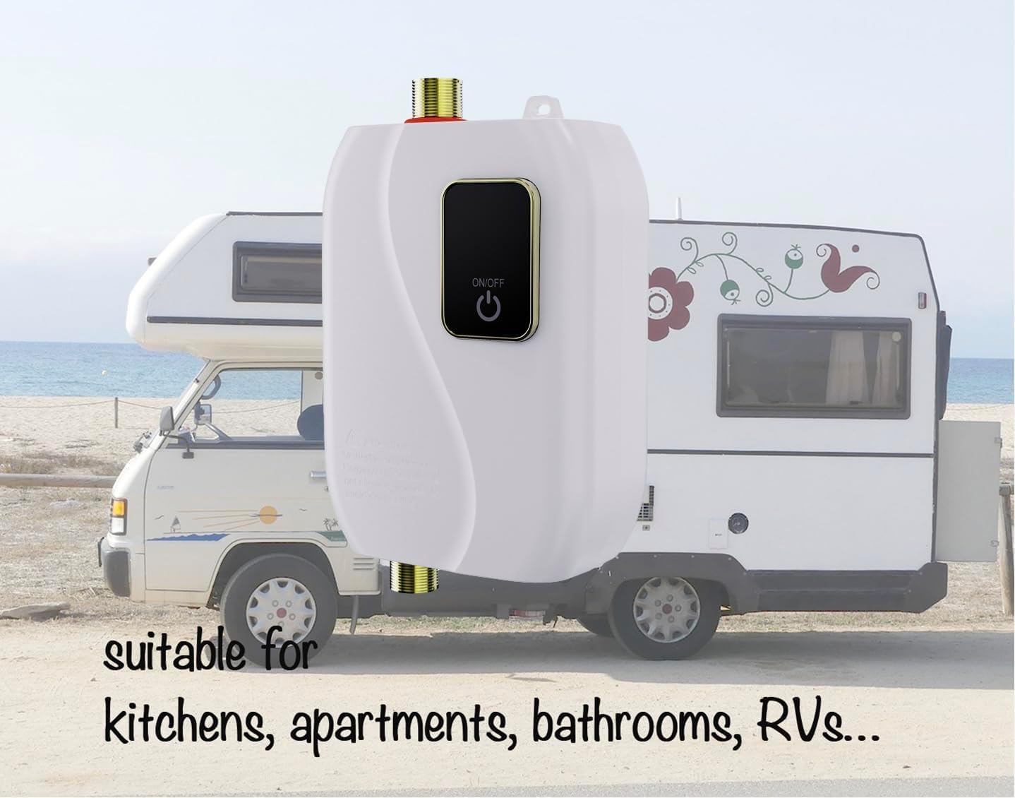 This mini water heater is ideal for limited spaces such as kitchens, apartments, bathrooms, RVs. Not Suitable for Shower(Shower normally requires at least 1.8 gpm)