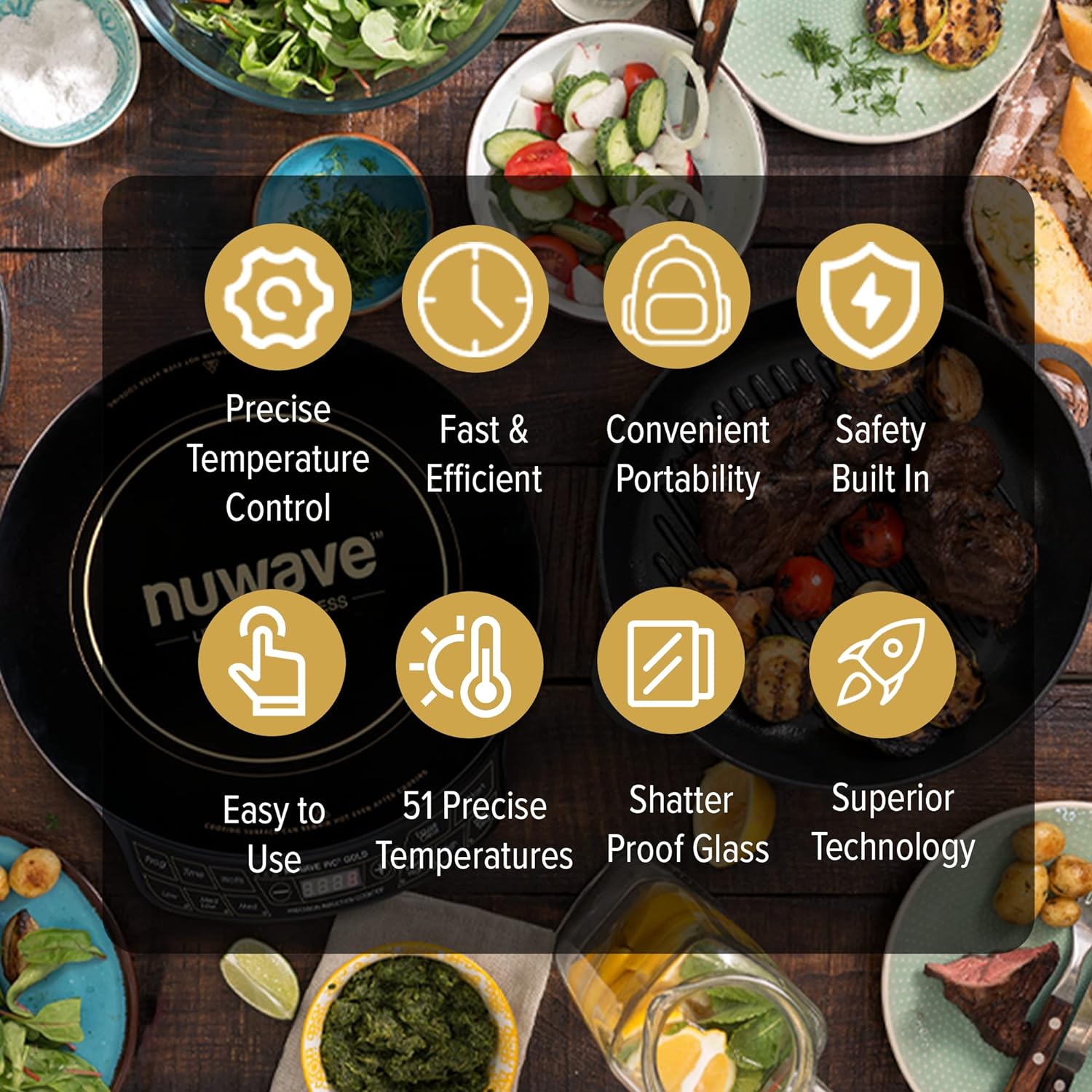 PRECISE TEMPERATURE CONTROL – With 51 precise temperatures at your fingertips, you can keep delicate sauces warm at 100°F to grilling a juicy steak with serious grill marks at 575°F. Nuwave Induction Cooktops are the first induction cooktops to revolutionize the industry by introducing precision temperatures to induction cooking.