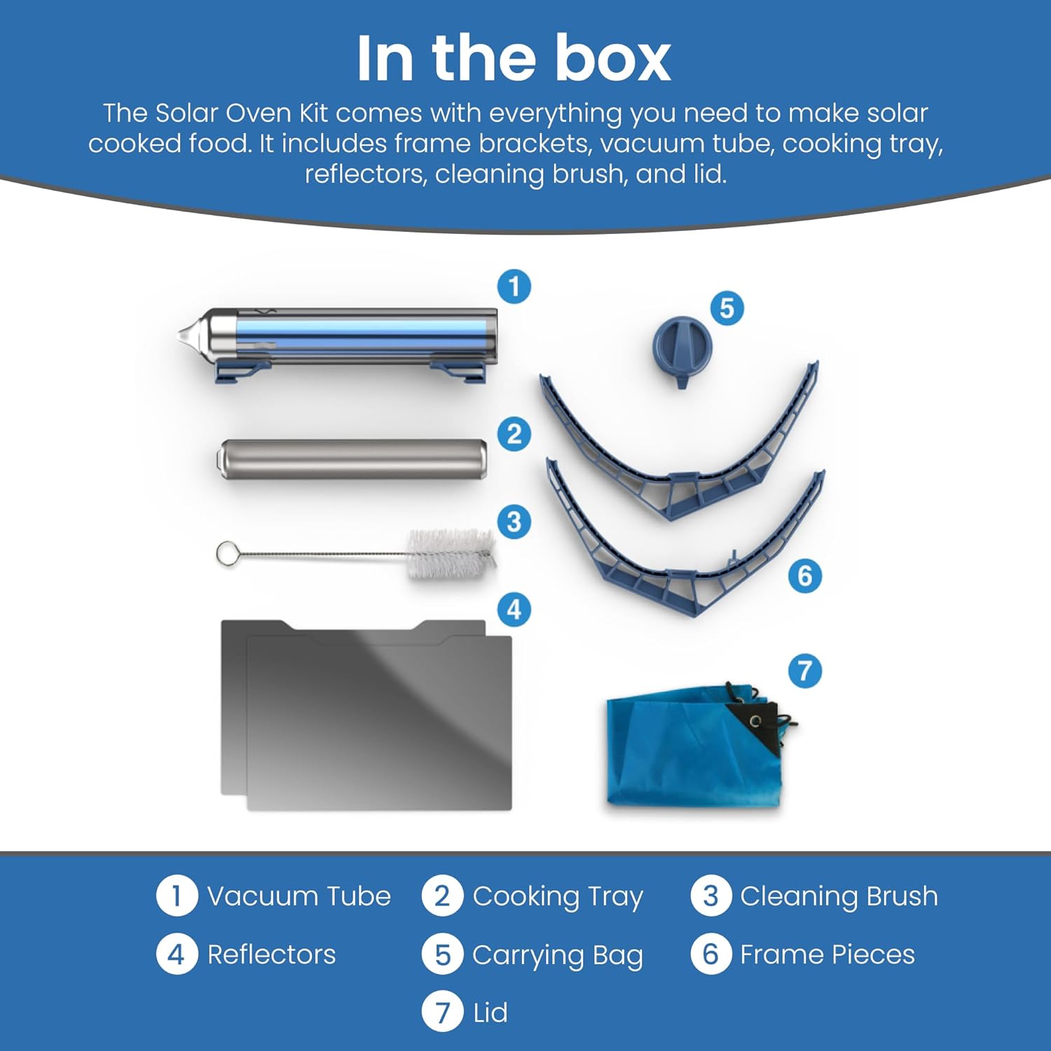 Complete Cooking Convenience: Everything you need for a seamless solar cooking experience comes neatly packed in our Solar Oven Kit. From sturdy frame brackets to the vacuum tube, cooking tray, reflectors, and even a cleaning brush and lid, we’ve left no stone unturned in ensuring your cooking journey is as effortless as it is enjoyable. With our comprehensive package, you’ll be all set to elevate your outdoor culinary escapades to new heights.