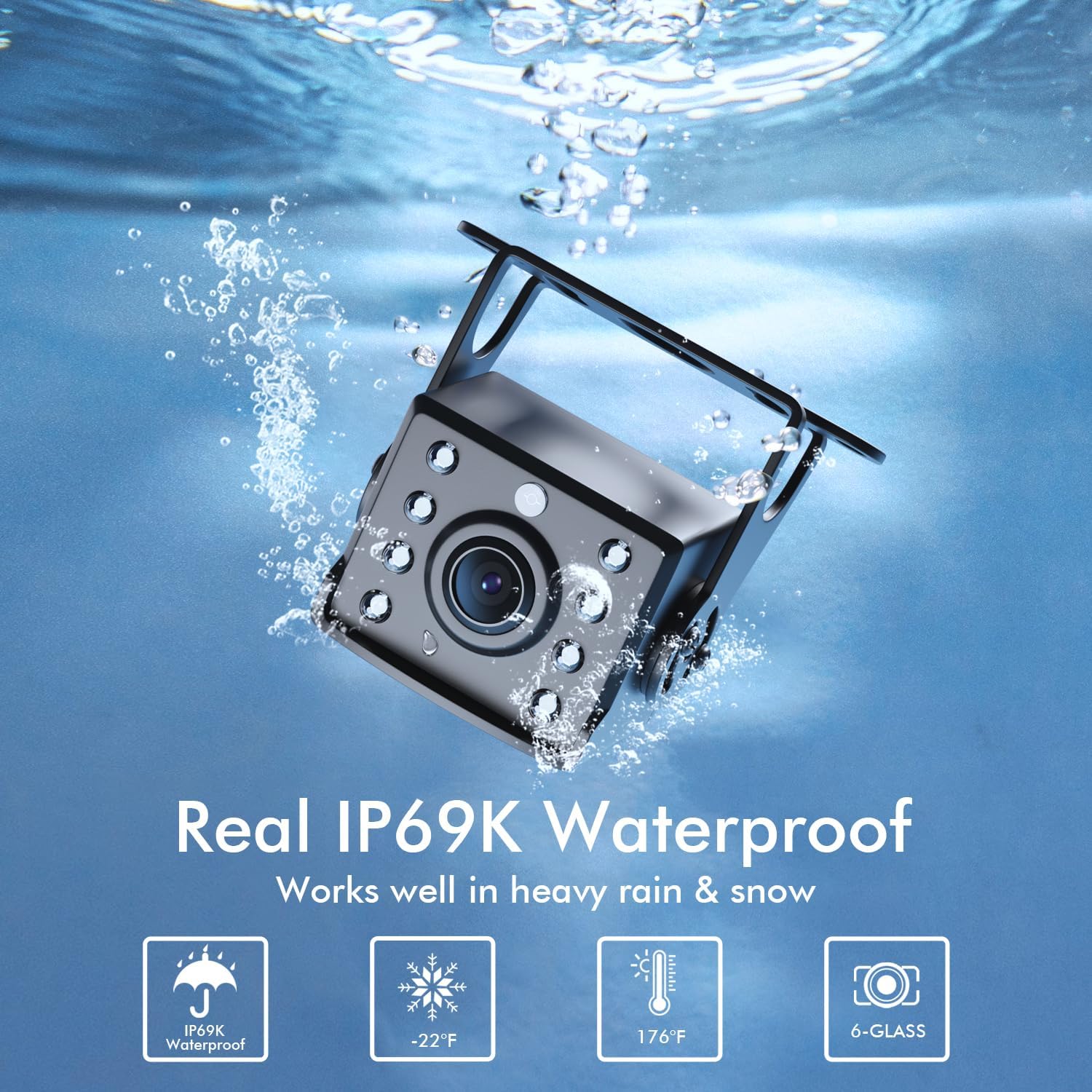 IP69 Waterproof Rear View Camera: IP69 waterproof standard makes it to work in bad weather, resistant to heat and cold weather. The reverse camera for truck can support operation in the range of -22°F (-30°C) to 176°F (80°C). No more lens water or fog problems.