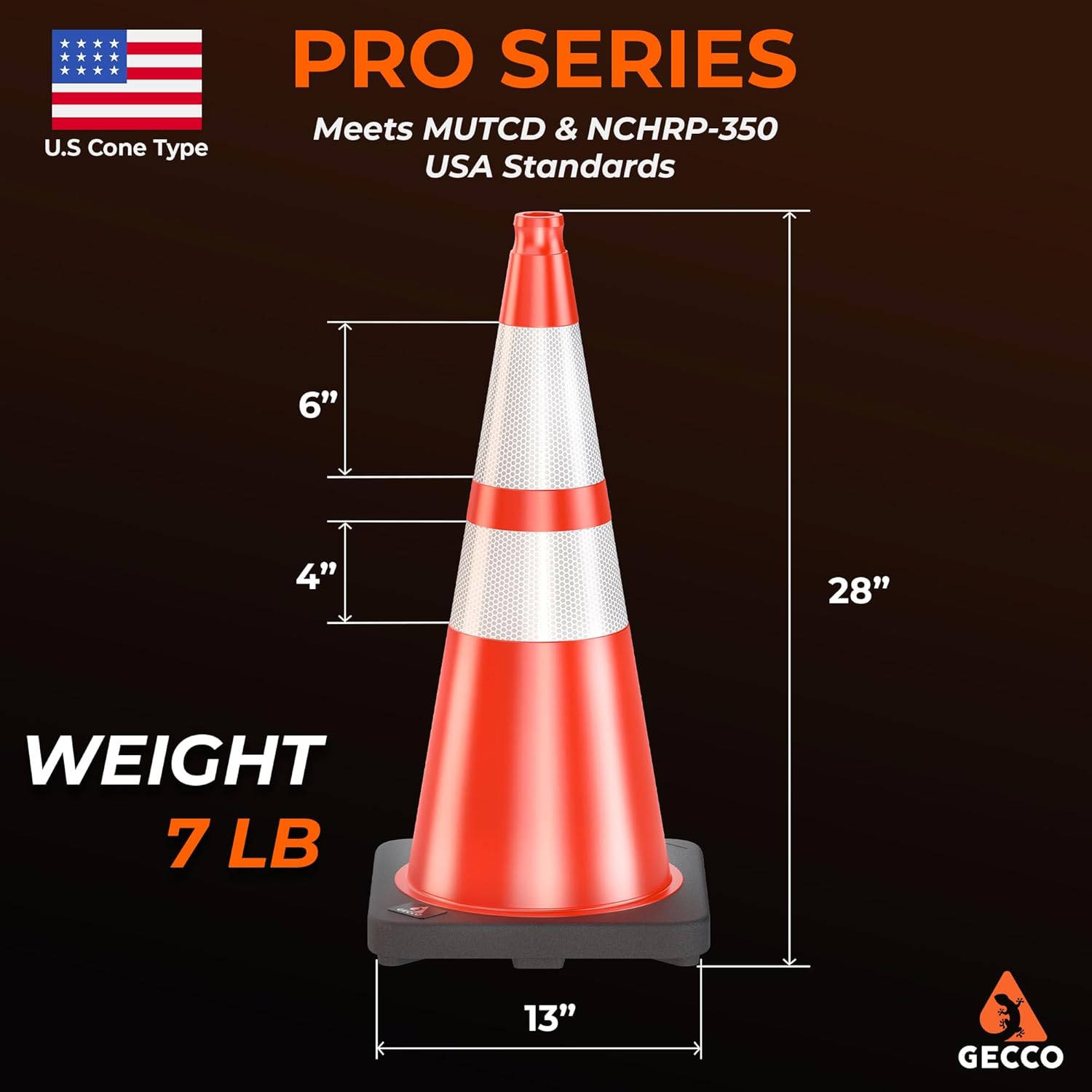 🚧 [PROFESSIONAL SERIES] – Part of our professional product line, these 28-inch, 7-pound orange safety cones are expertly designed in the USA. Manufactured to the highest standards, these durable cones fully comply with MUTCD and NCHRP-350 regulations.