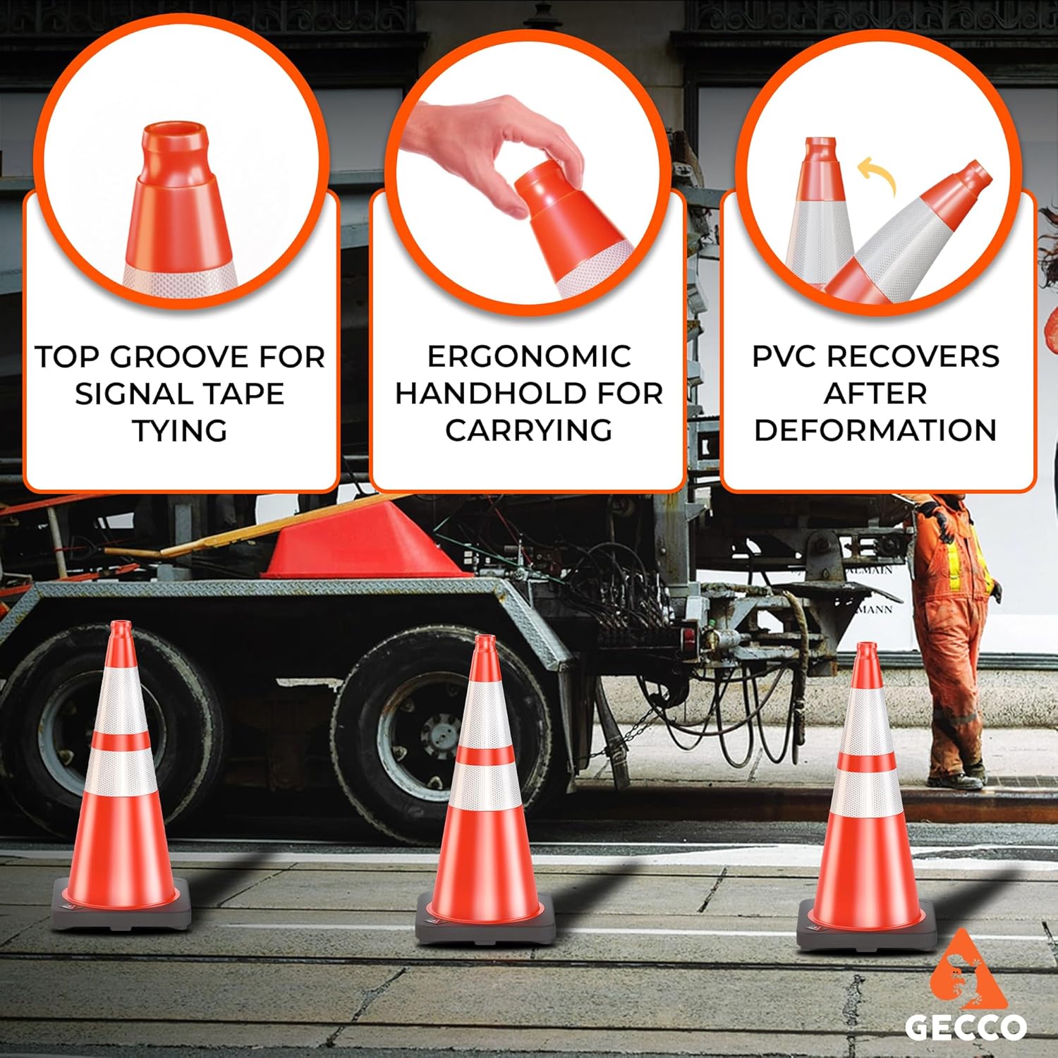 Be the first to review “GECCO ™ (6 Pack) 28 Inch 7 Lb Heavy Duty Orange Traffic Cones Set | Durable Safety Cones, Orange Cones, Parking Cones, Construction Cones, Road Cones | PVC Plastic & Black Base – [PRO Series]”