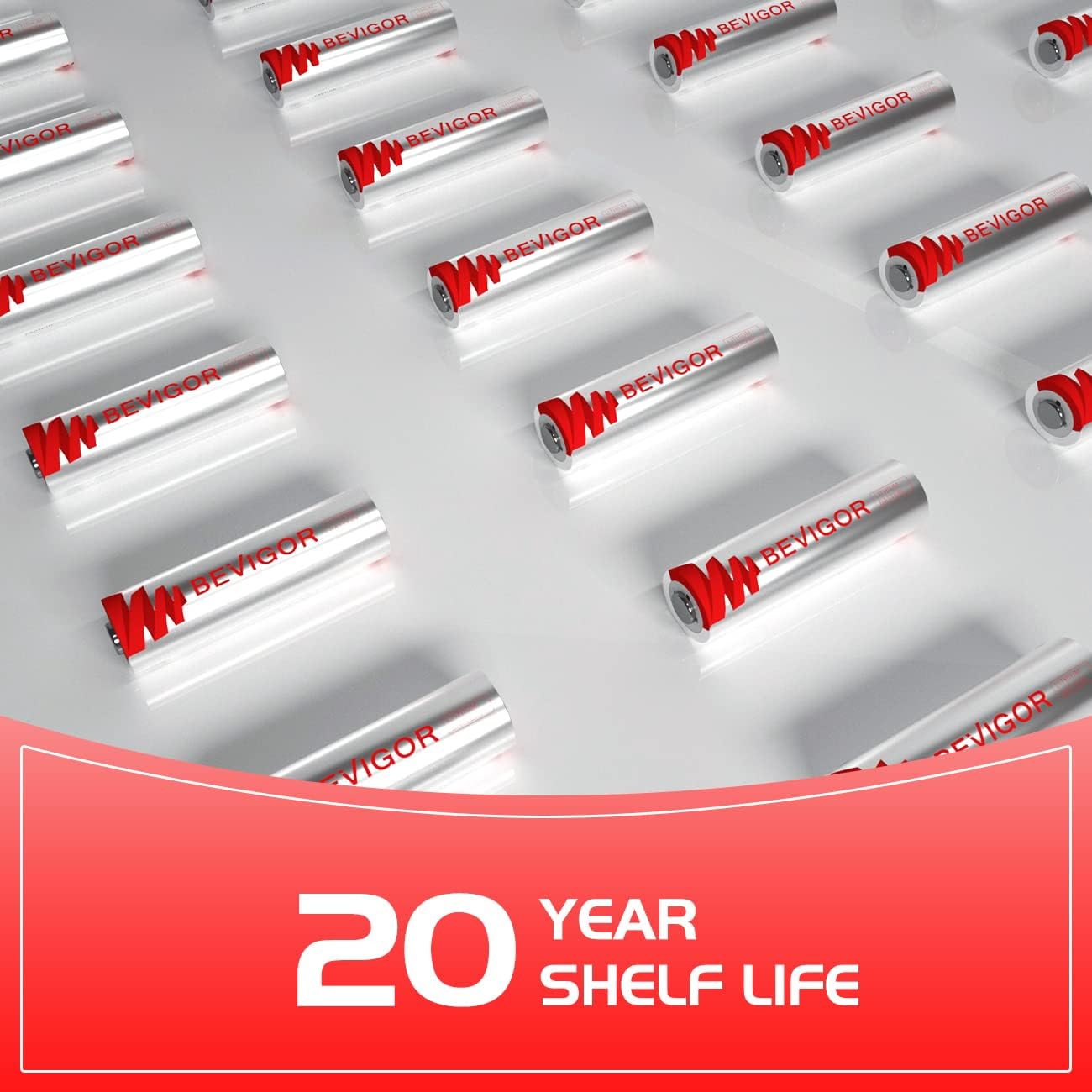 【20-Year Shelf Life】With up to 20 years of shelf life and less than 1%/year self-discharge rate, Bevigor double a lithium batteries are always ready whenever needed