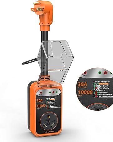 Circuit Analyzer: RV Surge Protector doubles as a circuit analyzer, before connecting your RV by verifying the power source is correctly wired and by helping detect most wiring faults.correct wiring, open ground, open neutral, reverse polarity, reverse heat/ground, and no power.