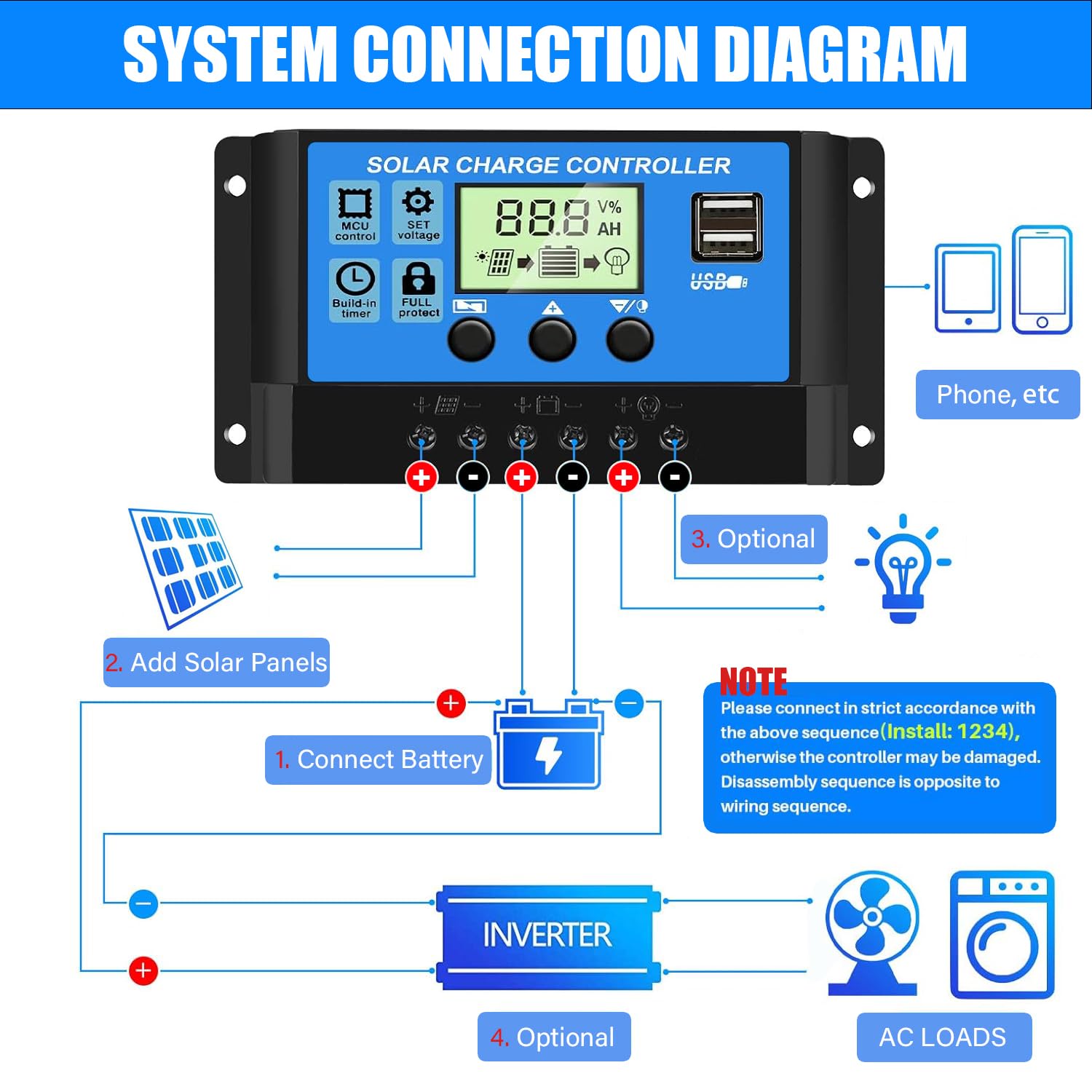 EASY TO INSTALL AND OPERATE: The charge controller should connect the battery first, then the solar panel, and finally the load. The disassembly sequence is contrary to the wiring order. Please refer to the manual for details. We offer a 12-month guarantee for quality-related issues an technique support, please contact us if any questions