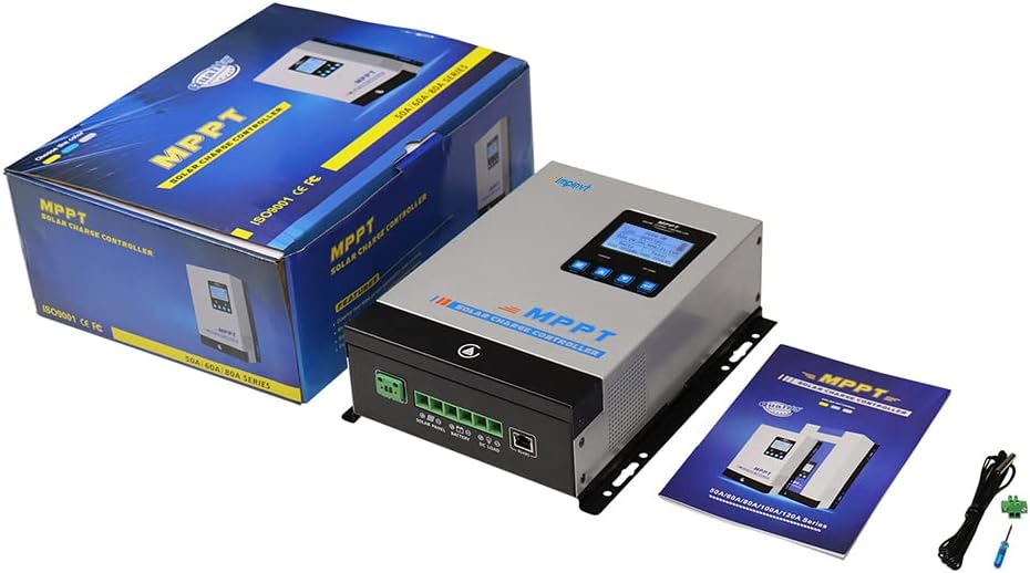 Rated Charge Current: 40AAuto 12/24/36/48V battery system150Voc max PV input voltageSolar panel: suitable for 570W (12V); 1130W (24V); 1710W (36V); 2270W (48V);Compatible with sealed, gel, flooded, and lithium batteriesRS485 communication: Capable of Wi-Fi remote monitoring (Additional purchase required) – Realize real-time wireless monitoring function of solar controller by APP, Simple and convenient to set, One-key restore the factory settings. Suitable for Andriod & IOS system.