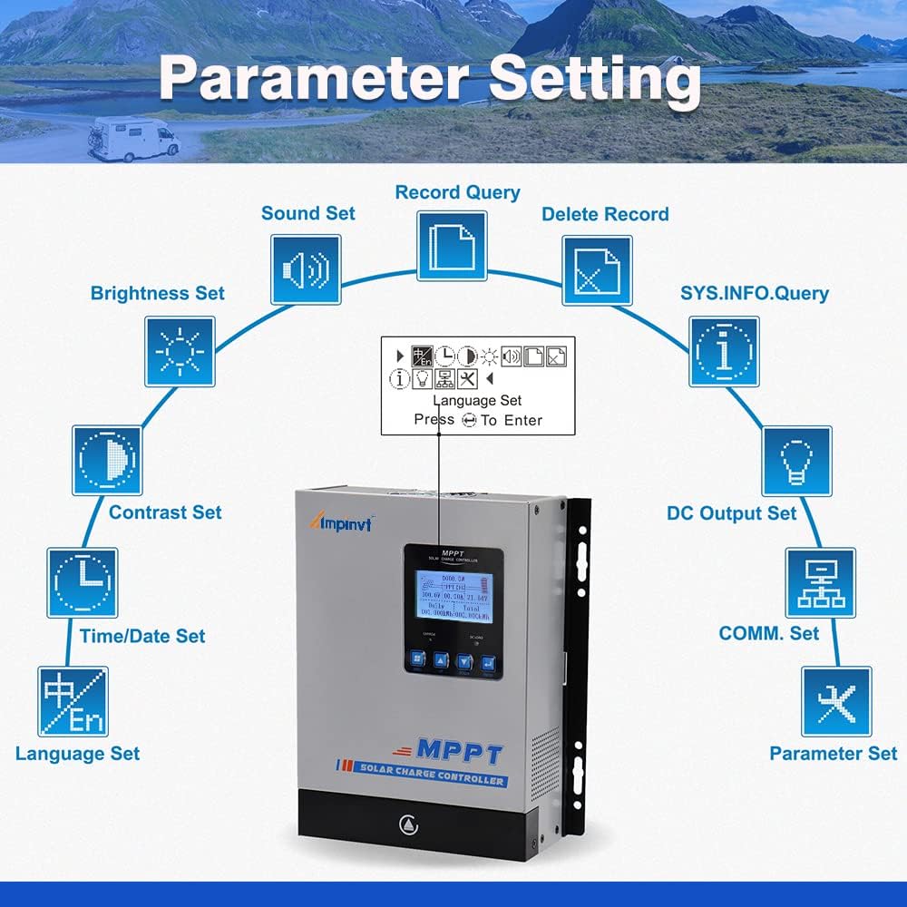RS485 communication: Capable of Wi-Fi remote monitoring (Additional purchase required) – Realize real-time wireless monitoring function of solar controller by APP, Simple and convenient to set, One-key restore the factory settings. Suitable for Andriod & IOS system.