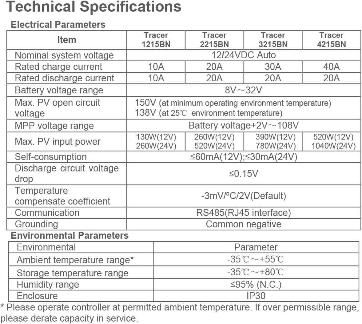 12/24VDC automatically identifying system voltage, 150V Max. PV Open Circuit Voltage. Die-cast aluminum design, ensuring excellent heat dissipation characteristic.