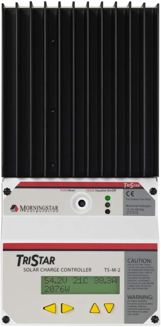 Morningstar Tristar 60A PWM Solar Charge Controller (TS-60M) – Solar Panel Regulator w/ Meter for 12/24/36/48V LA/Li Batteries, Load/Diversion Control, Data/Comms, FCC comp. 5 Yr. WTY, Designed in USA