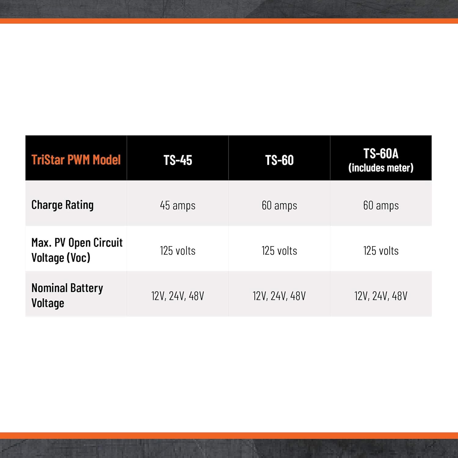 60A PWM CONTROLLER: Morningstar TriStar Pulse Width Modulation (PWM) 60A solar charge controller delivers reliable charging for larger off-grid solar systems. It regulates power from the solar array to the battery bank. Benefit from lower self-consumption and consistent energy harvesting efficiency.