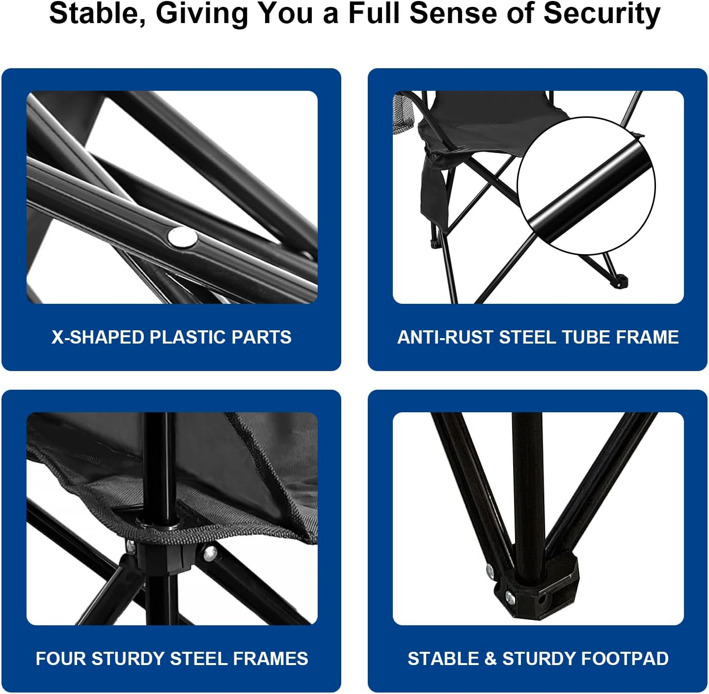 STABLE SUPPORTER: Imagine having a Hercules bodyguard! The outdoor chairs are made of thick and sturdy steel pipes, innovative X-shaped steel bars, and heavy-duty steel frames to support your outdoor leisure life! In addition, the powder coating design can prevent rust and scratches.