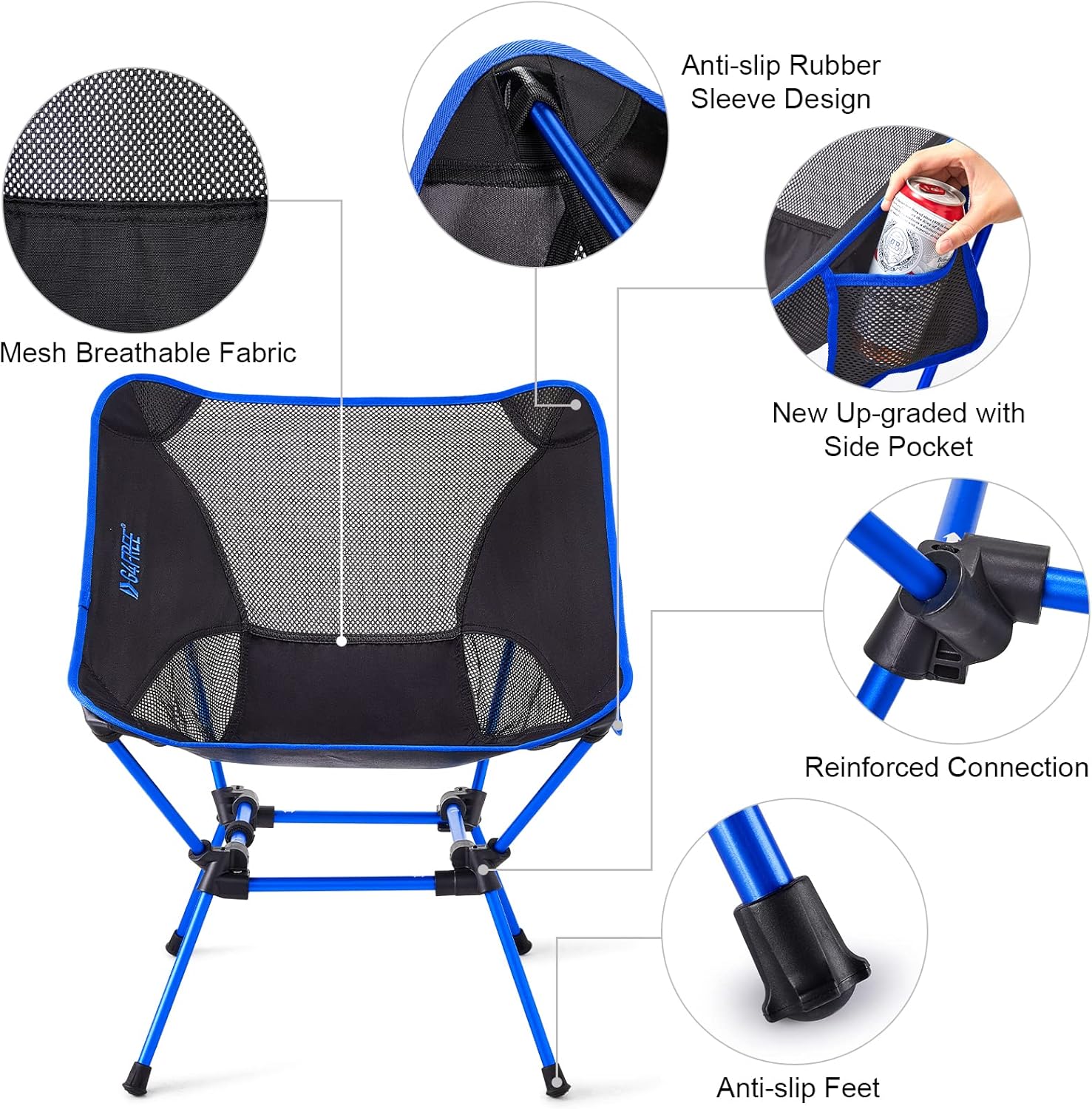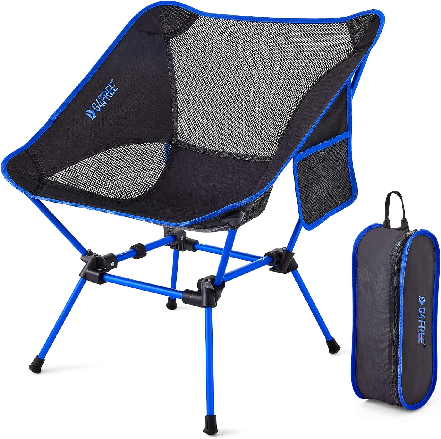 G4Free Folding Camping Chairs, Ultralight Compact Backpacking Folding Chairs Lawn Chairs Heavy Duty 330lbs with Side Pockets Packable for Outdoor Camp Travel Beach Picnic Gardening Travel Hiking