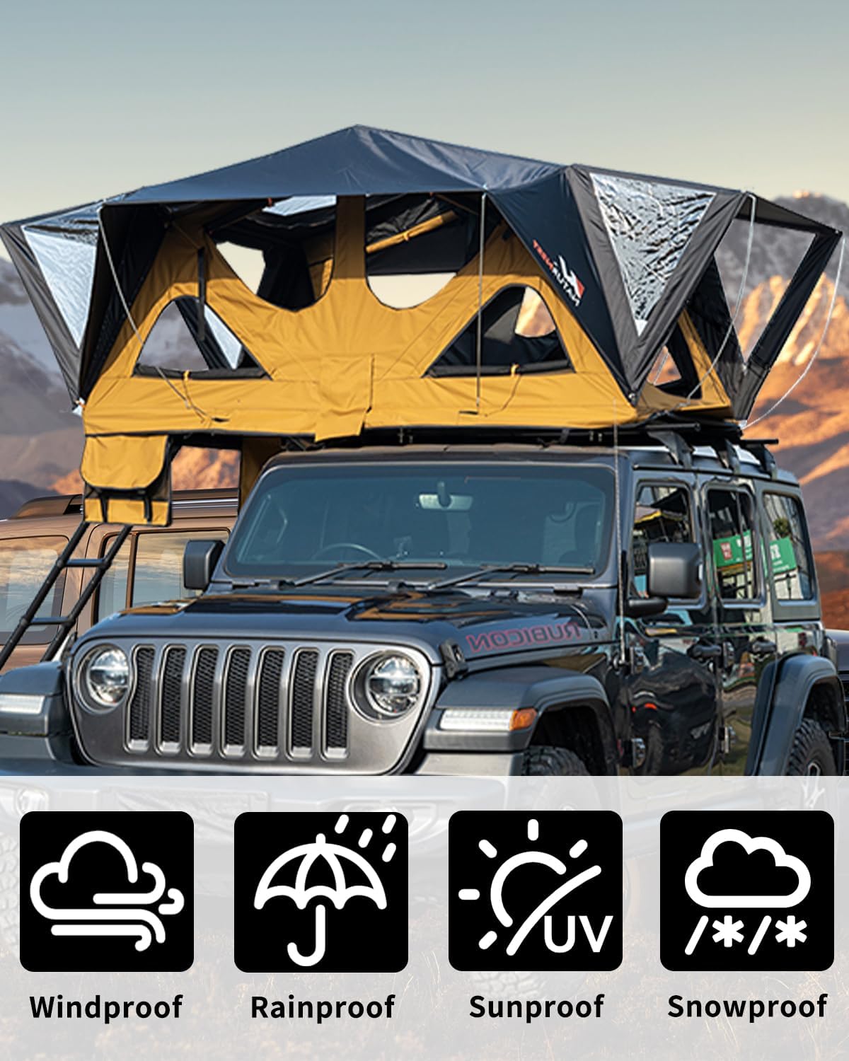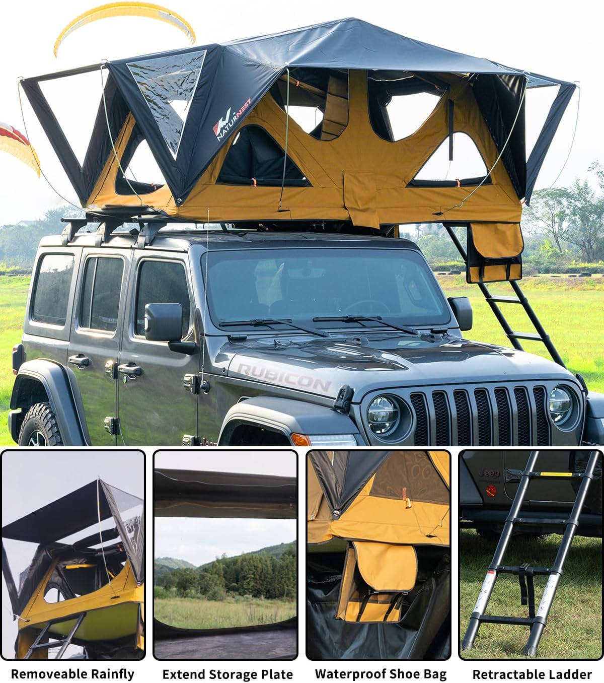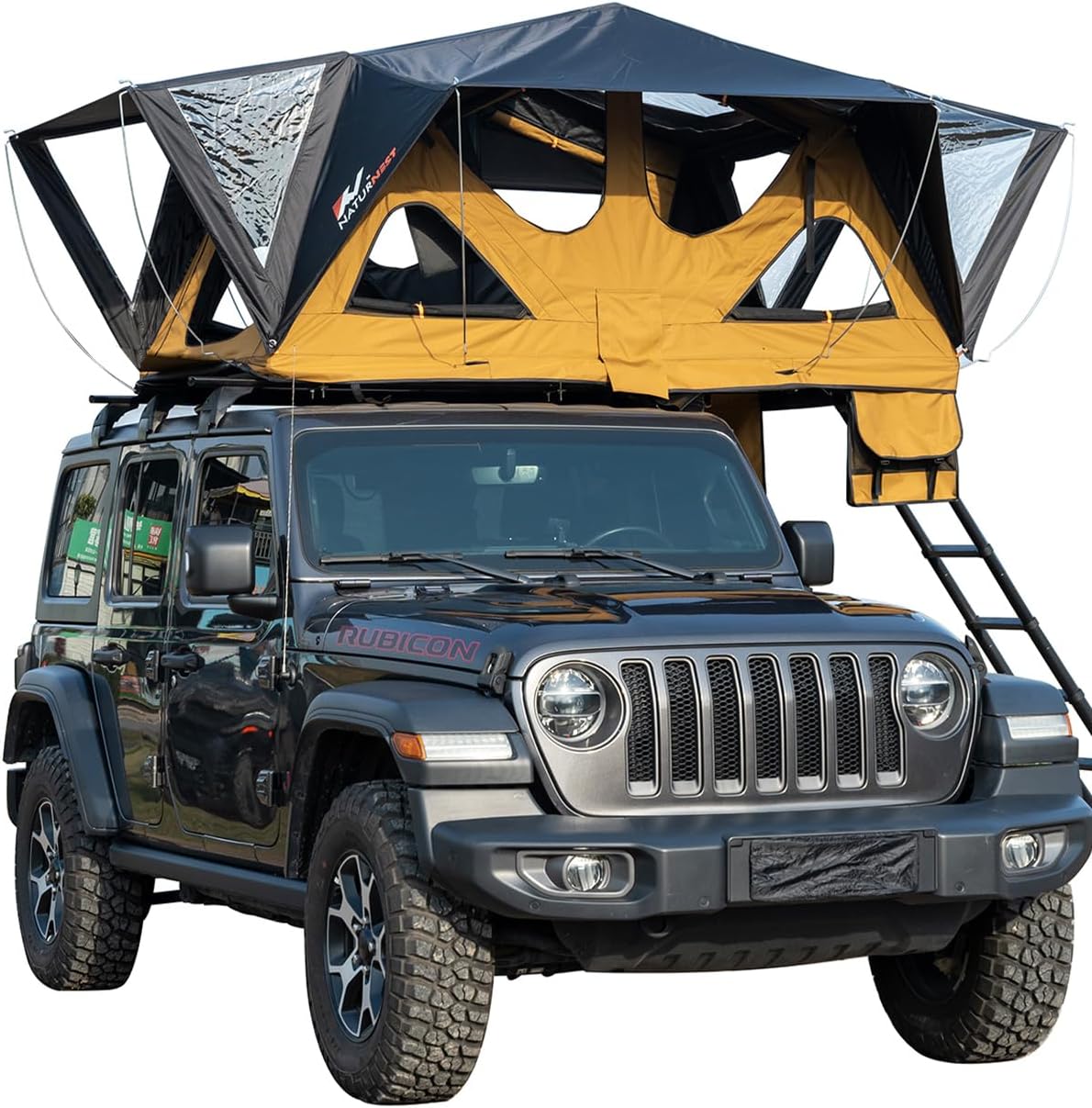 Universal Compatibility: Designed to fit most four-wheel-drive roof racks and trailer hitches, the Naturnest roof top tent includes a telescoping ladder for easy access, making it a versatile and convenient choice for any adventure.