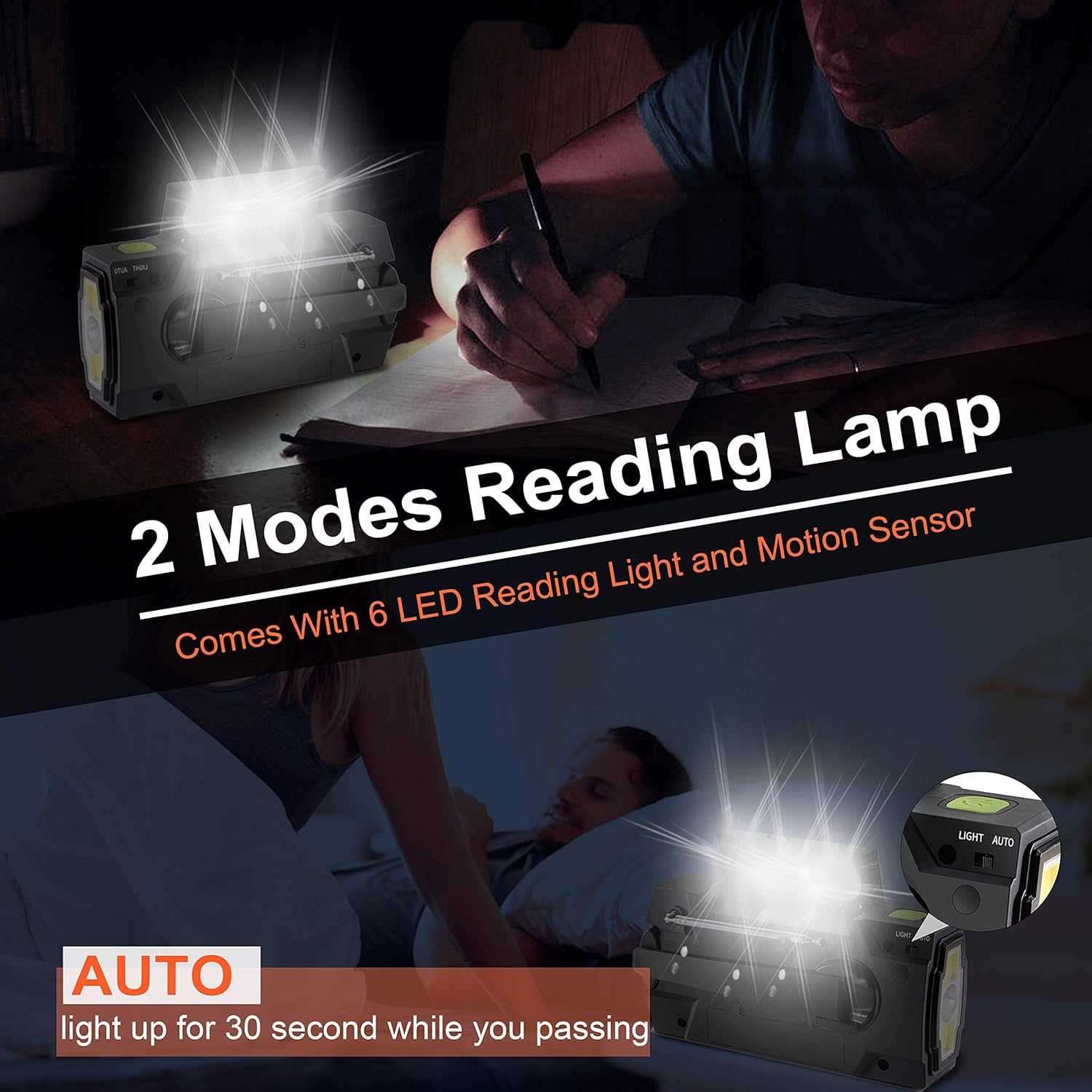 ★【Super-Bright 3 Mode Flashlight And Motion Sensor Reading Lamp】 If you are an outdoor enthusiast or need to walk in places without lights, the flashlight radio with 3 modes flashlight is a great alternative, which farthest lighting range exceeds10m, farther than the most other solar emergency radio. Also, a reading lamp with a Motion sensor will greatly help you get up in the mid-night to avoid waking your family. Add to cart, you will never regret that you purchase this crank flashlight radio!